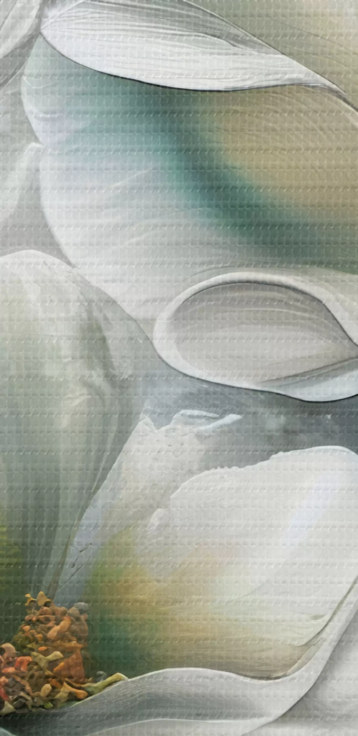 Selle lõuendi peenike niidipunus meenutab professionaalse kunstniku lõuendi pinda.