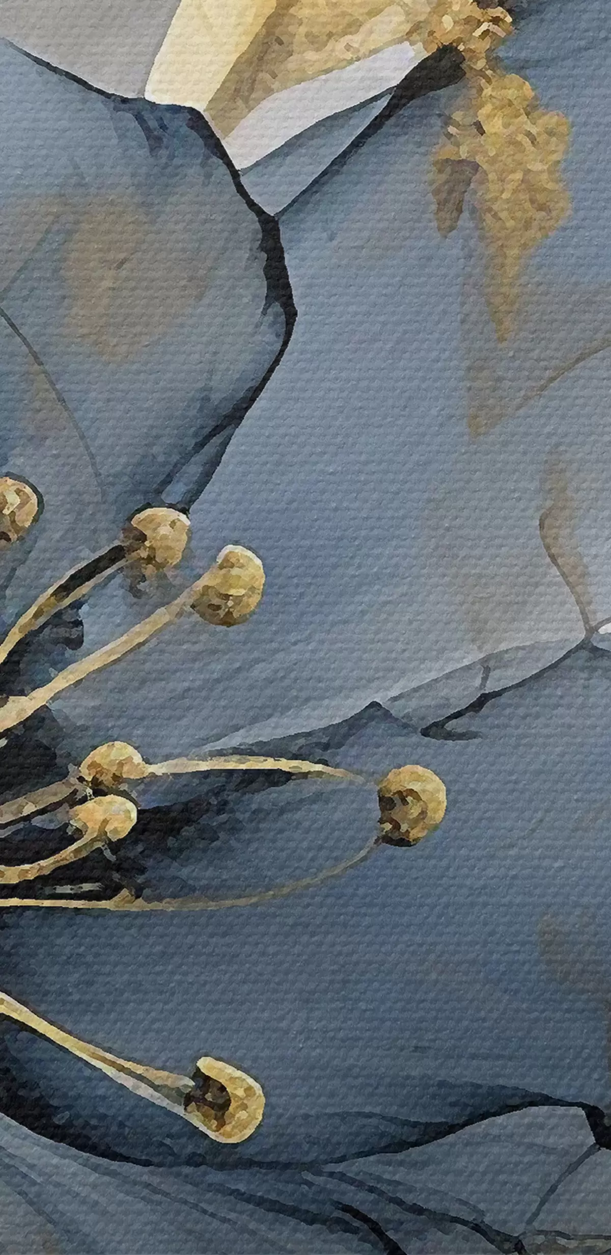 Pilt Sinine läbipaistev õrn lill koos värvipritsmetega Nr r35527