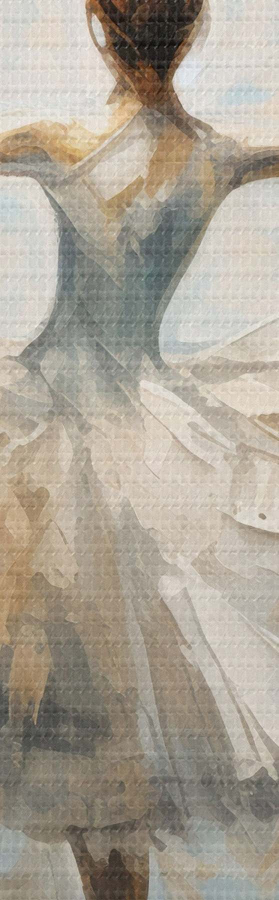 Selle lõuendi peenike niidipunus meenutab professionaalse kunstniku lõuendi pinda.