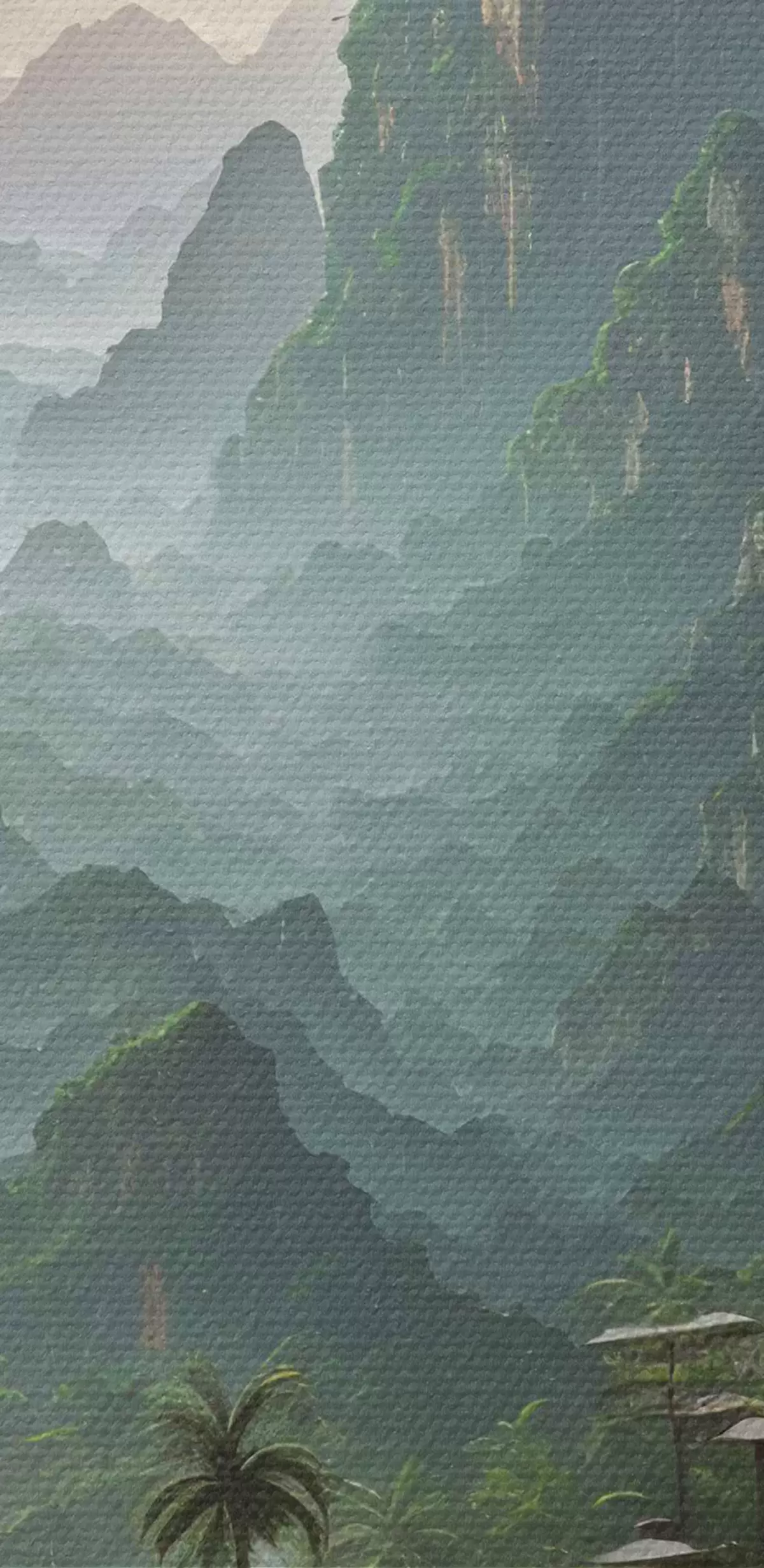 Selle lõuendi peenike niidipunus meenutab professionaalse kunstniku lõuendi pinda.