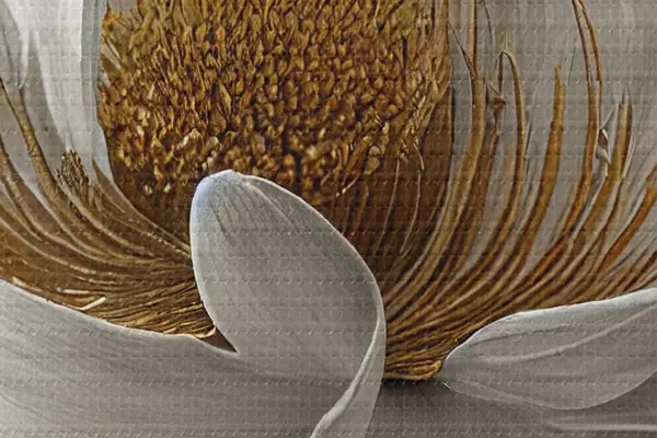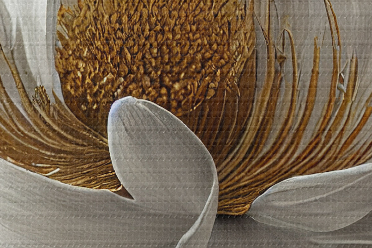 Selle lõuendi peenike niidipunus meenutab professionaalse kunstniku lõuendi pinda.
