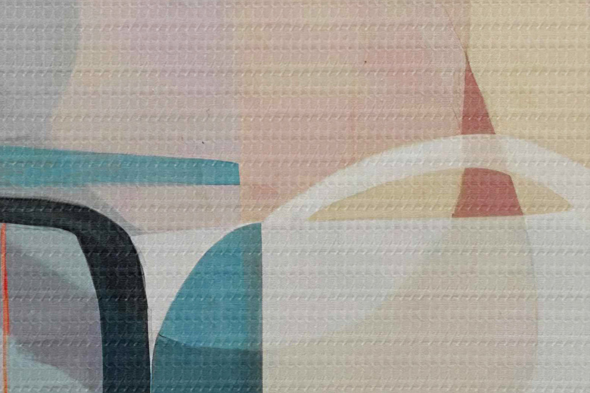 Selle lõuendi peenike niidipunus meenutab professionaalse kunstniku lõuendi pinda.