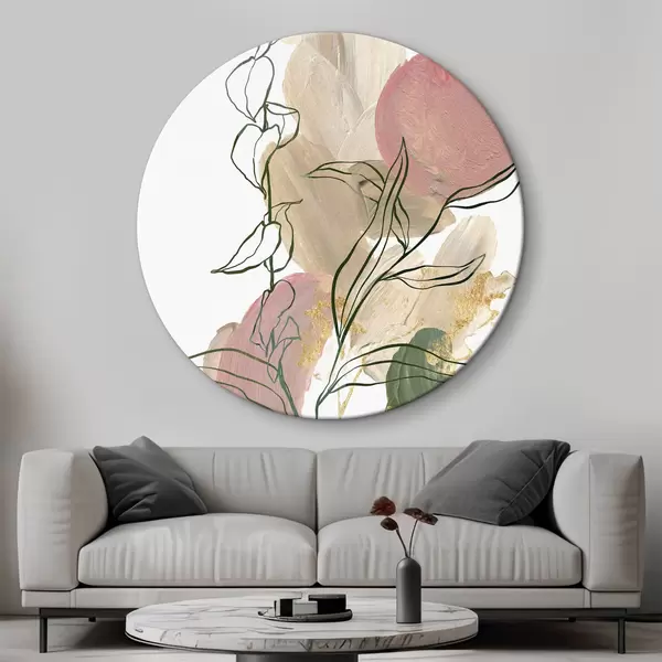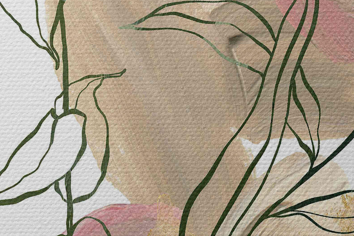Pilt Akvarell sügisel kompositsioon lineaarne oksad, roosa ja roheline laigud Nr r35949