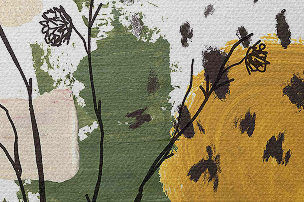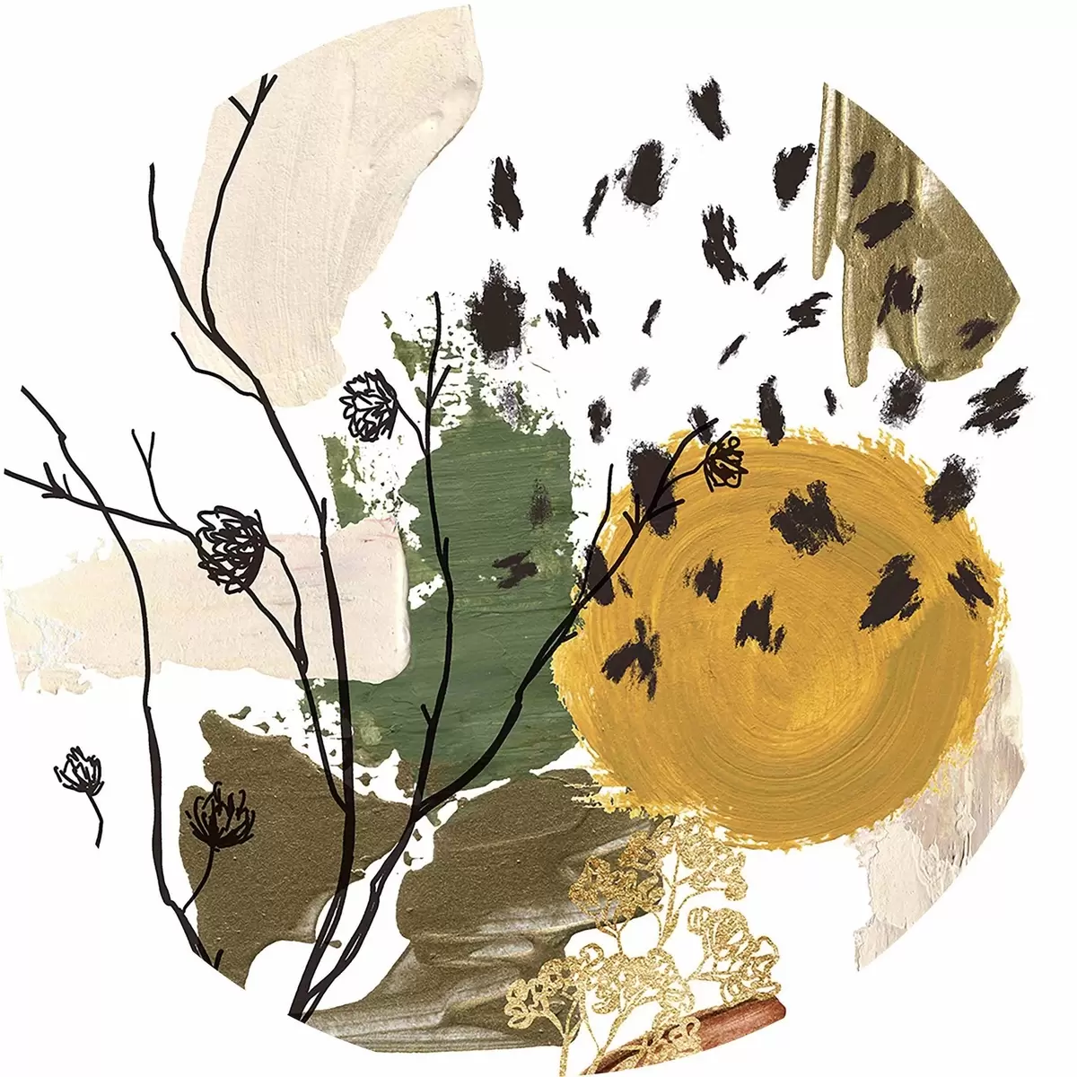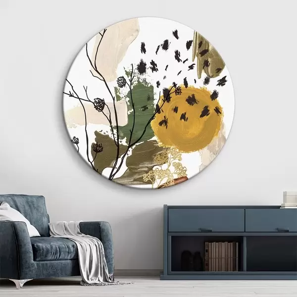 Pilt Akvarellakujuline sügiskompositsioon lineaarsetest okstest, pruunidest, kollastest ja rohelistest laikudest Nr r35950