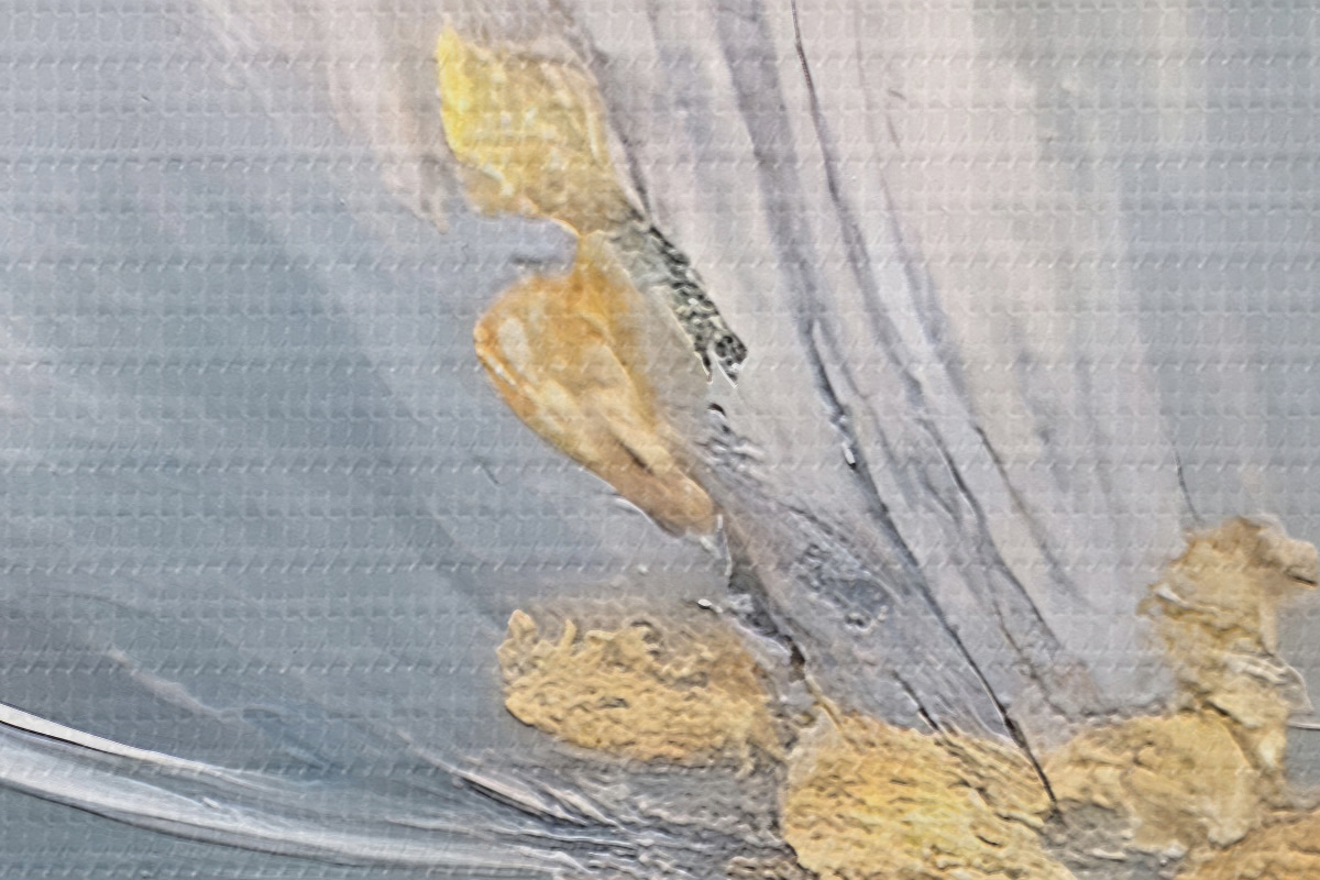 Selle lõuendi peenike niidipunus meenutab professionaalse kunstniku lõuendi pinda.