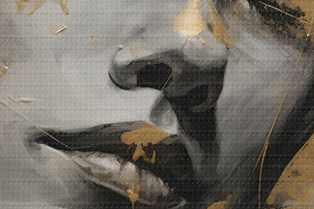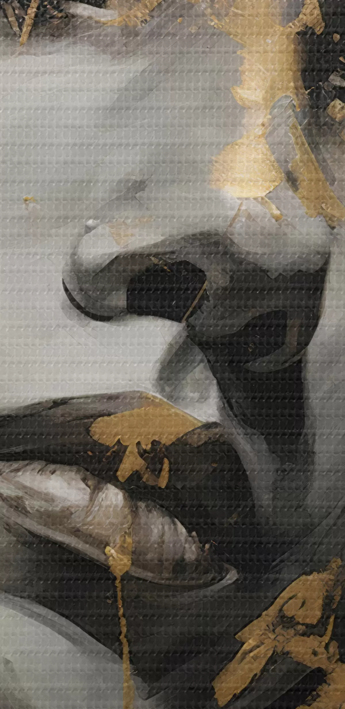 Selle lõuendi peenike niidipunus meenutab professionaalse kunstniku lõuendi pinda.