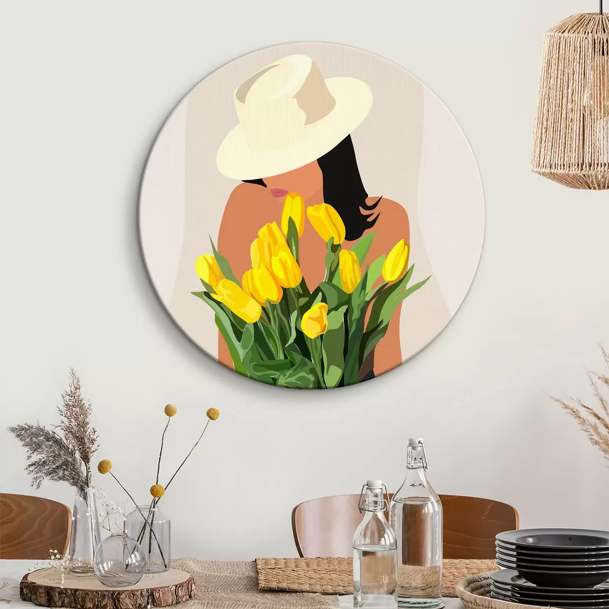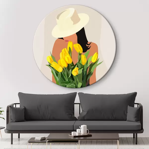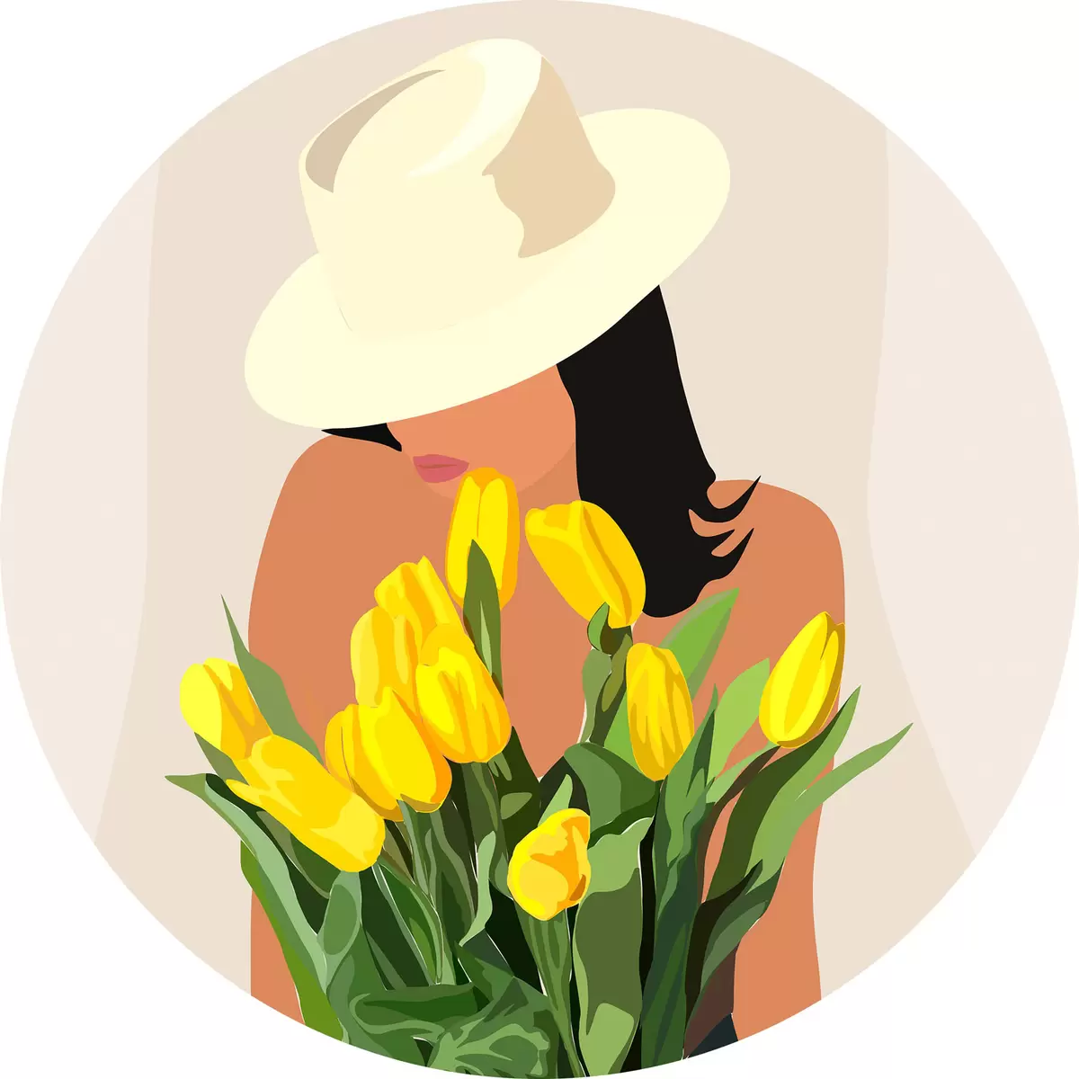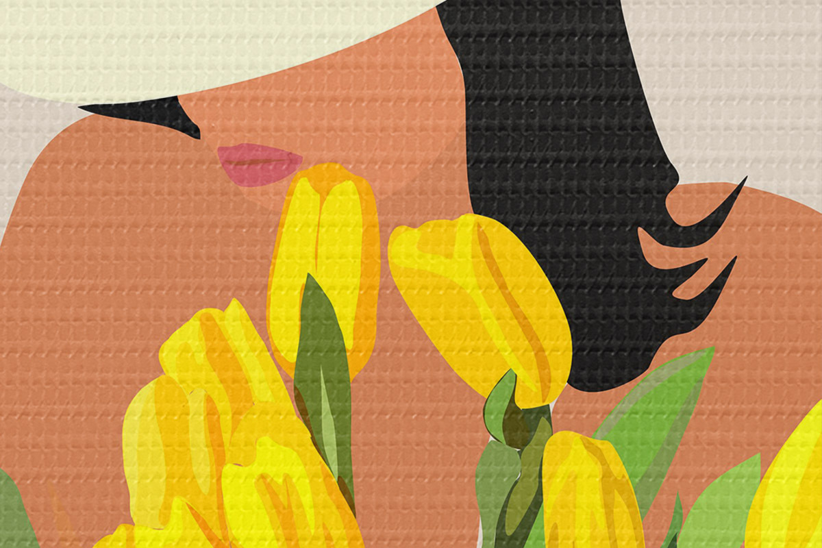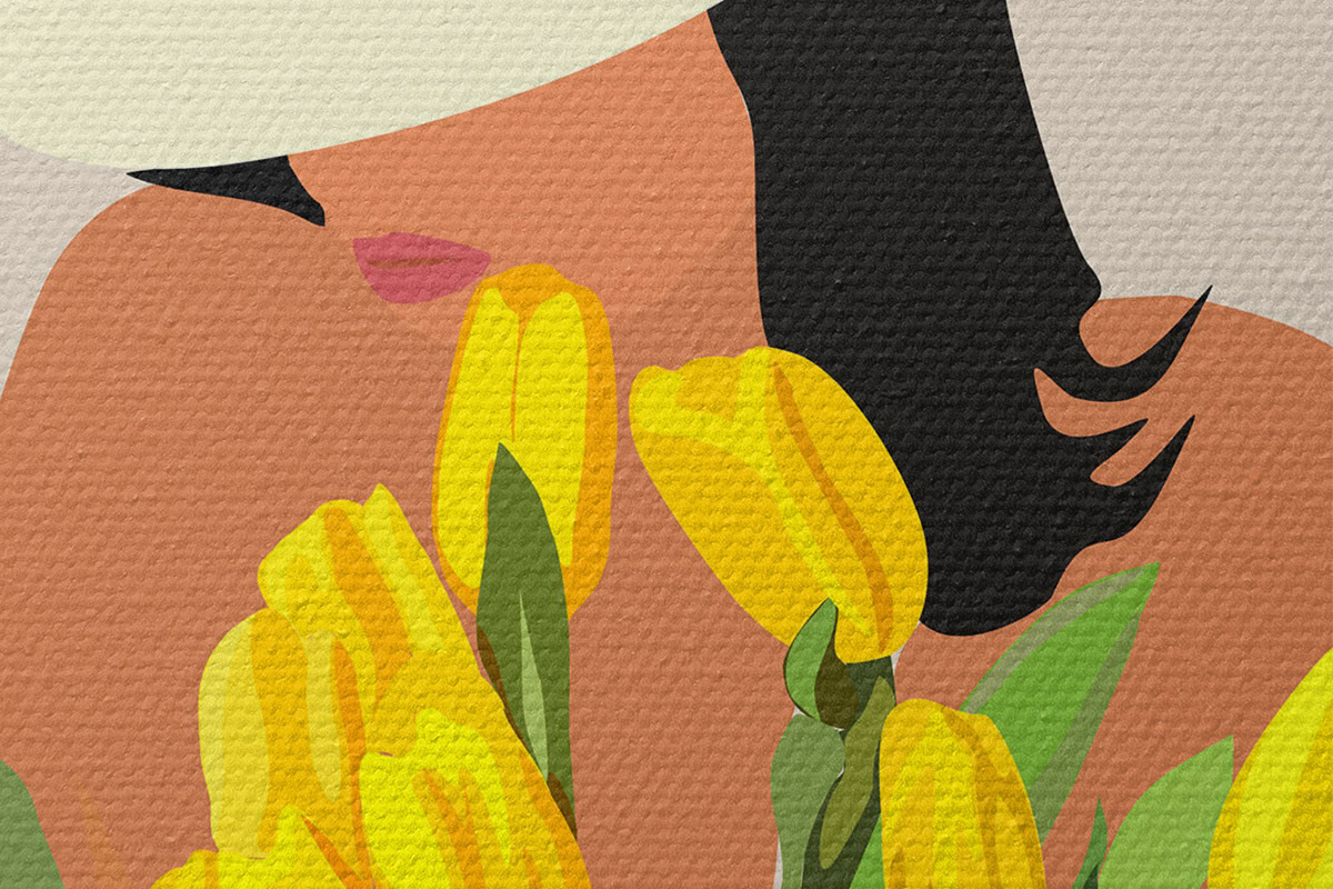 Pilt Tüdruk kollaste lilledega abstraktne boho stiilis Nr r36336