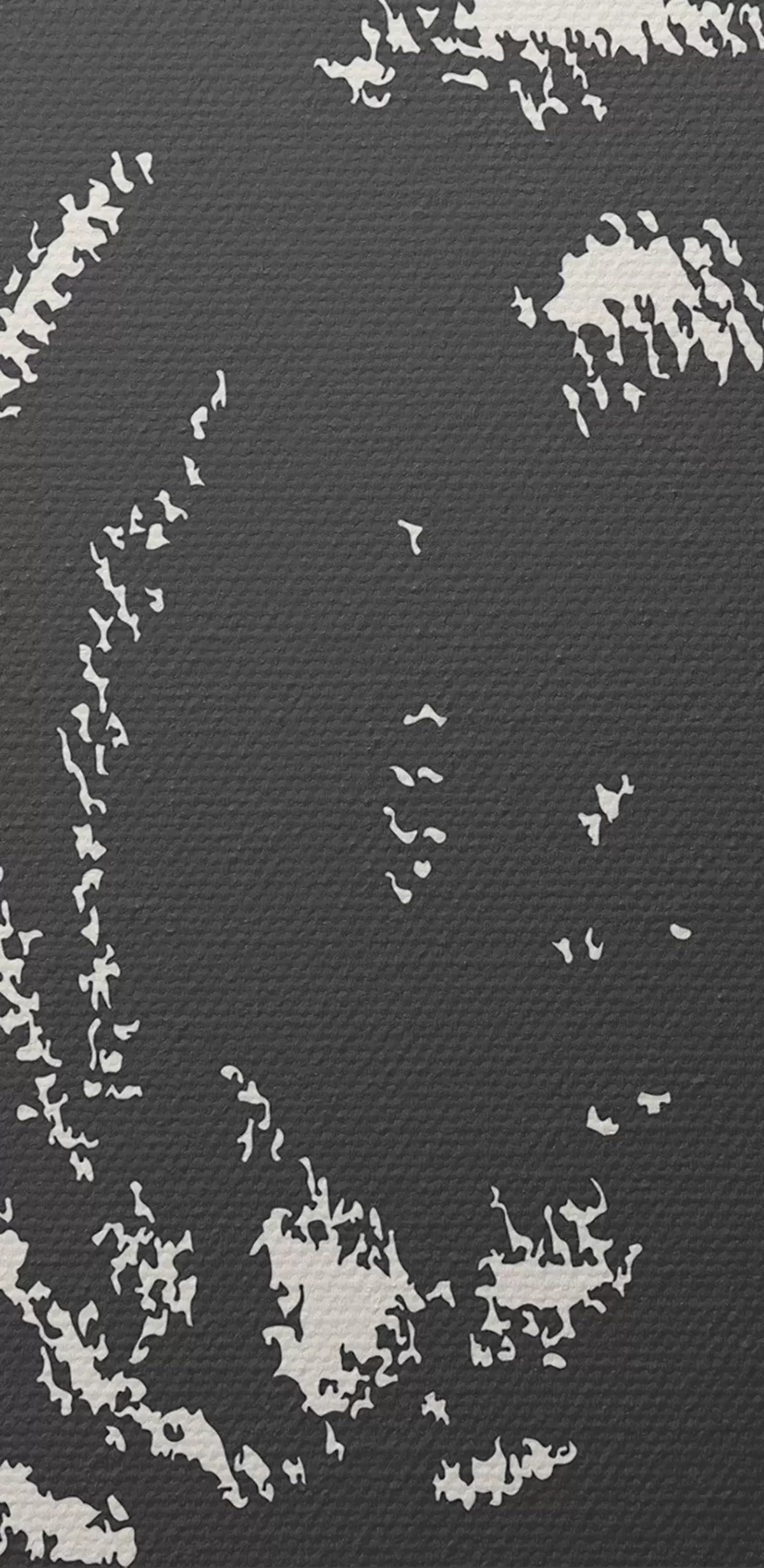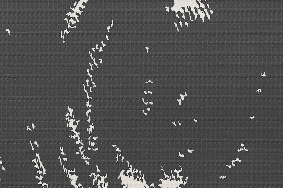 Selle lõuendi peenike niidipunus meenutab professionaalse kunstniku lõuendi pinda.