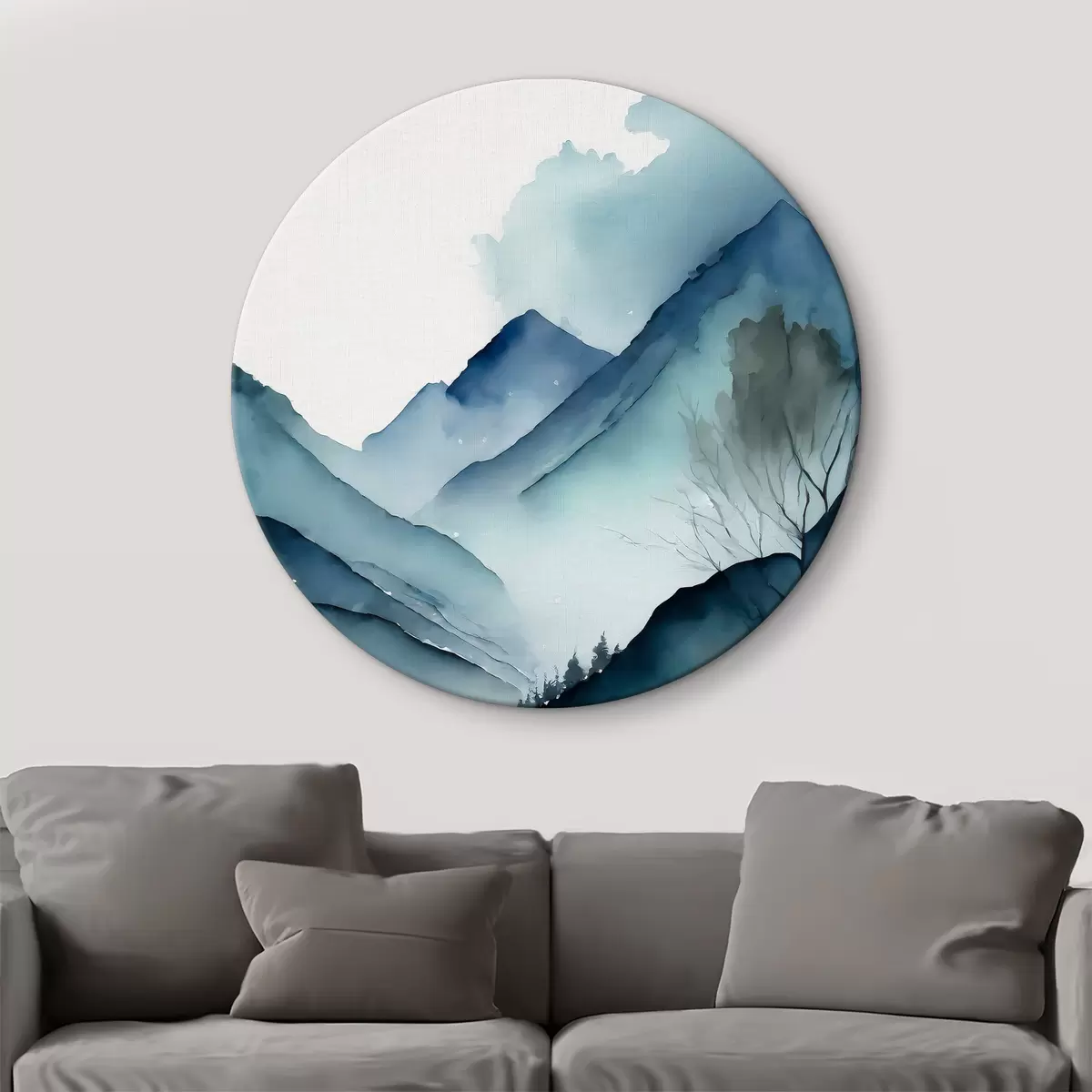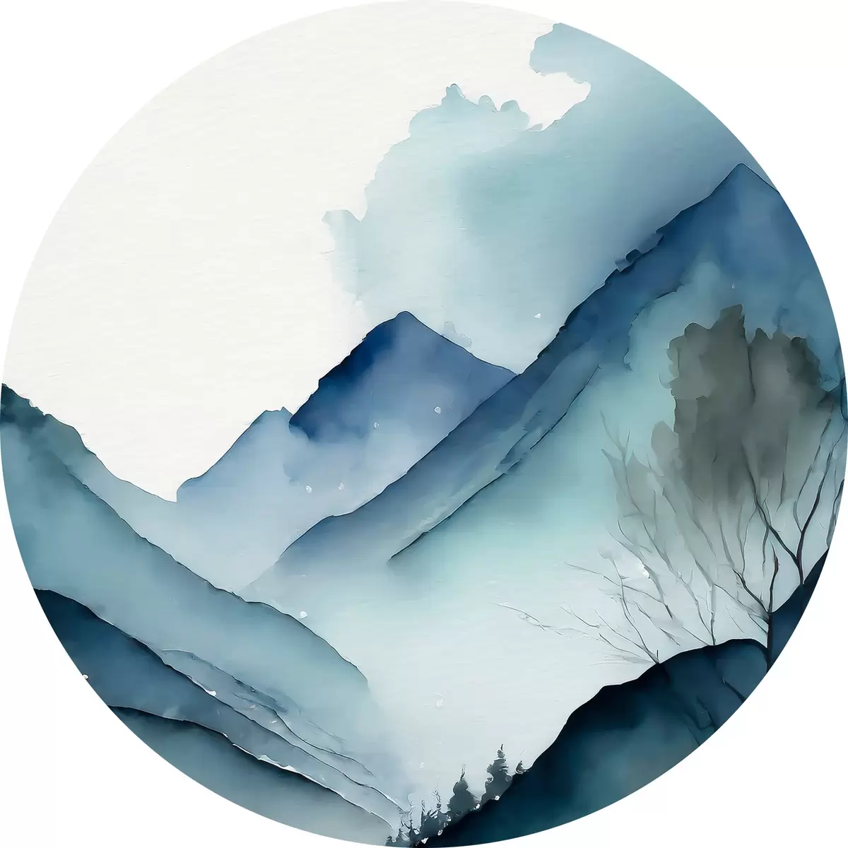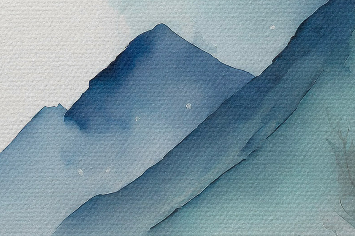 Pilt Akvarell Abstraktne mägimaastik, hallid ja akvamariinsed värvid Nr r36495