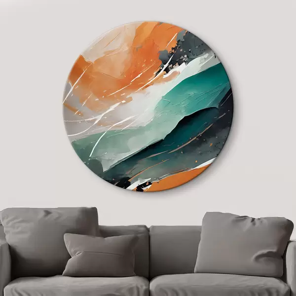 Pilt Abstraktne akrüülkunst, pintslitõmme, värvitekstuur, oranž, sinised värvid Nr r36497