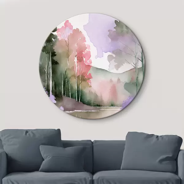 Pilt Akvarell Järve- ja metsamaastik, kevad, õrnad looduslikud värvid Nr r36501