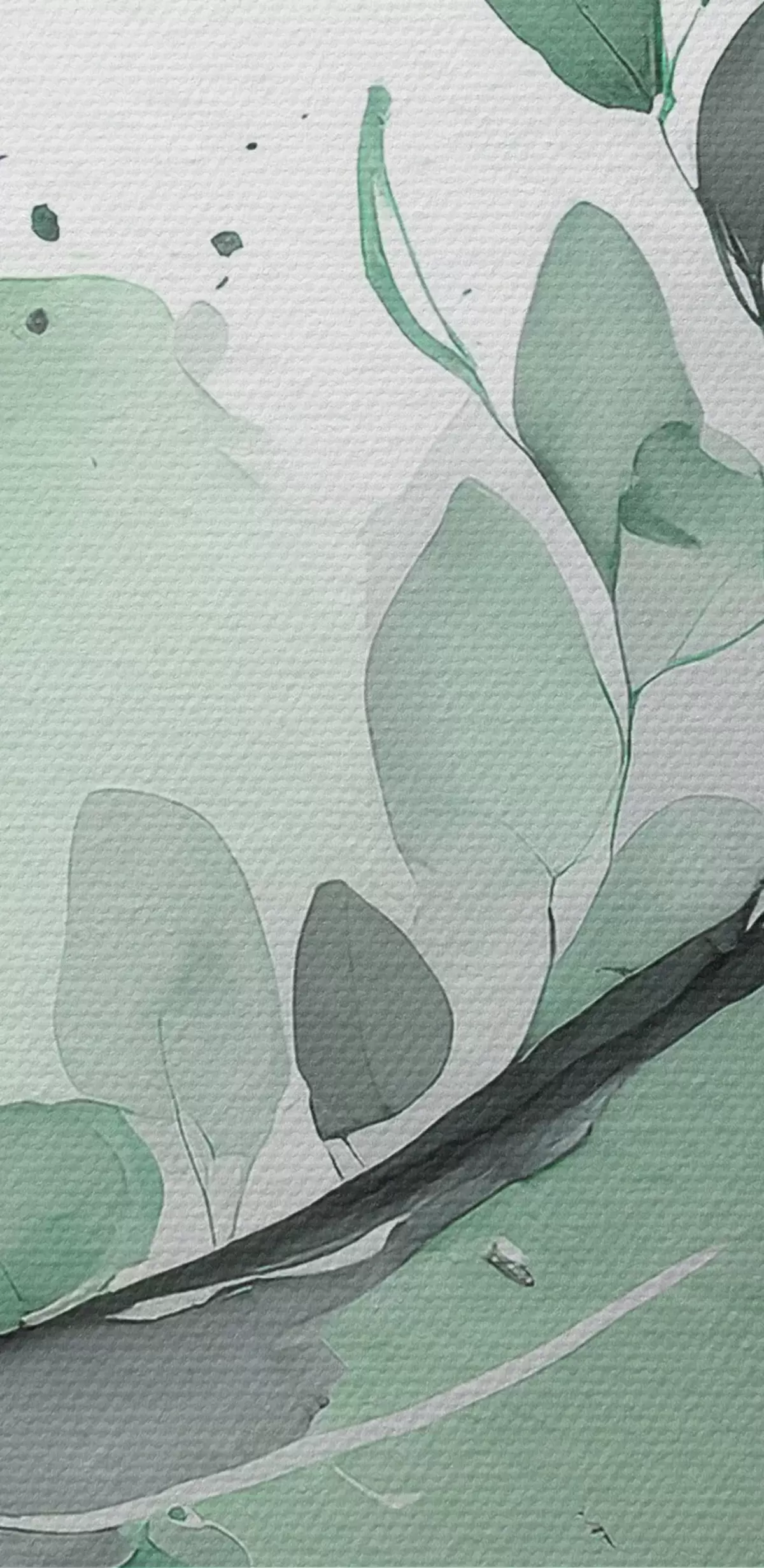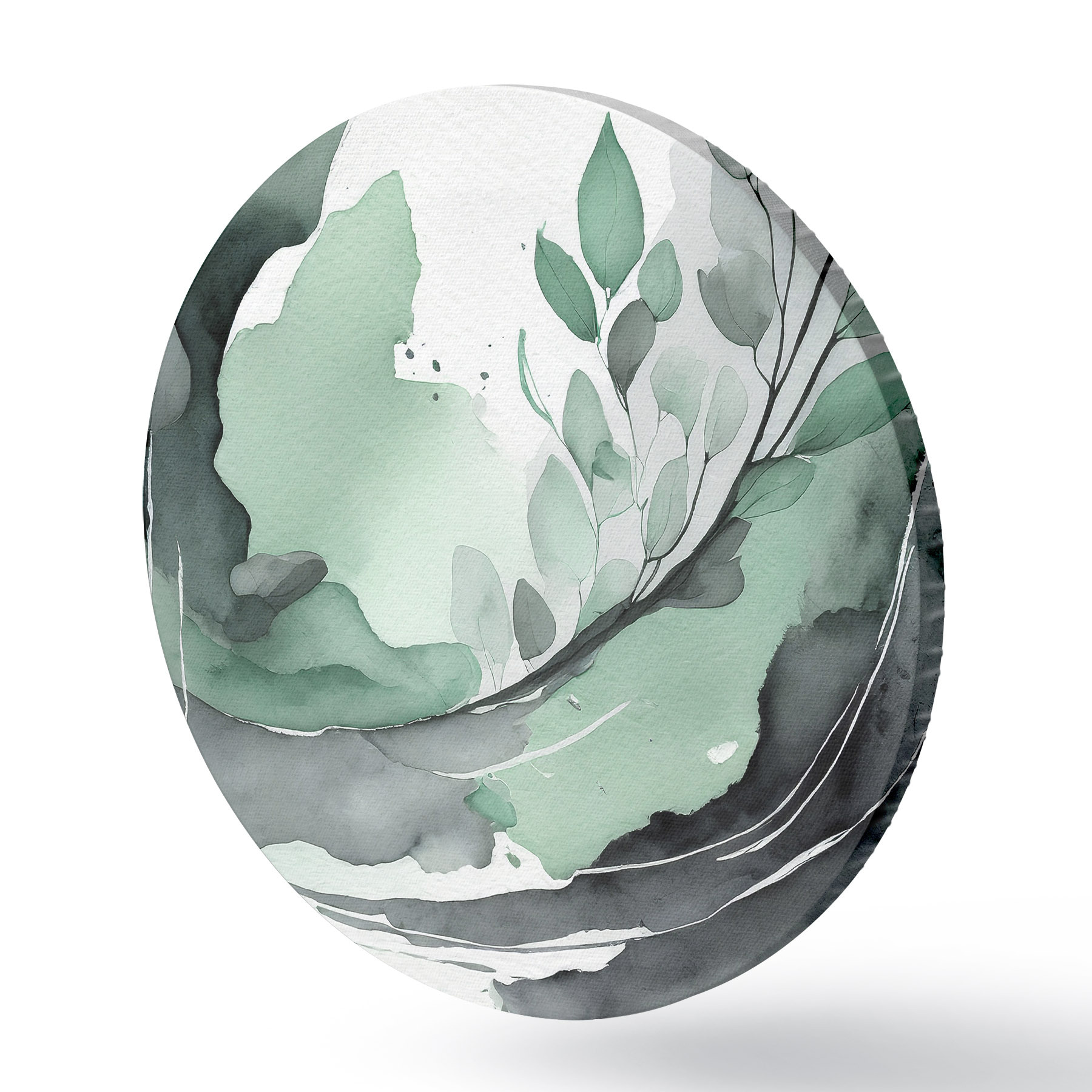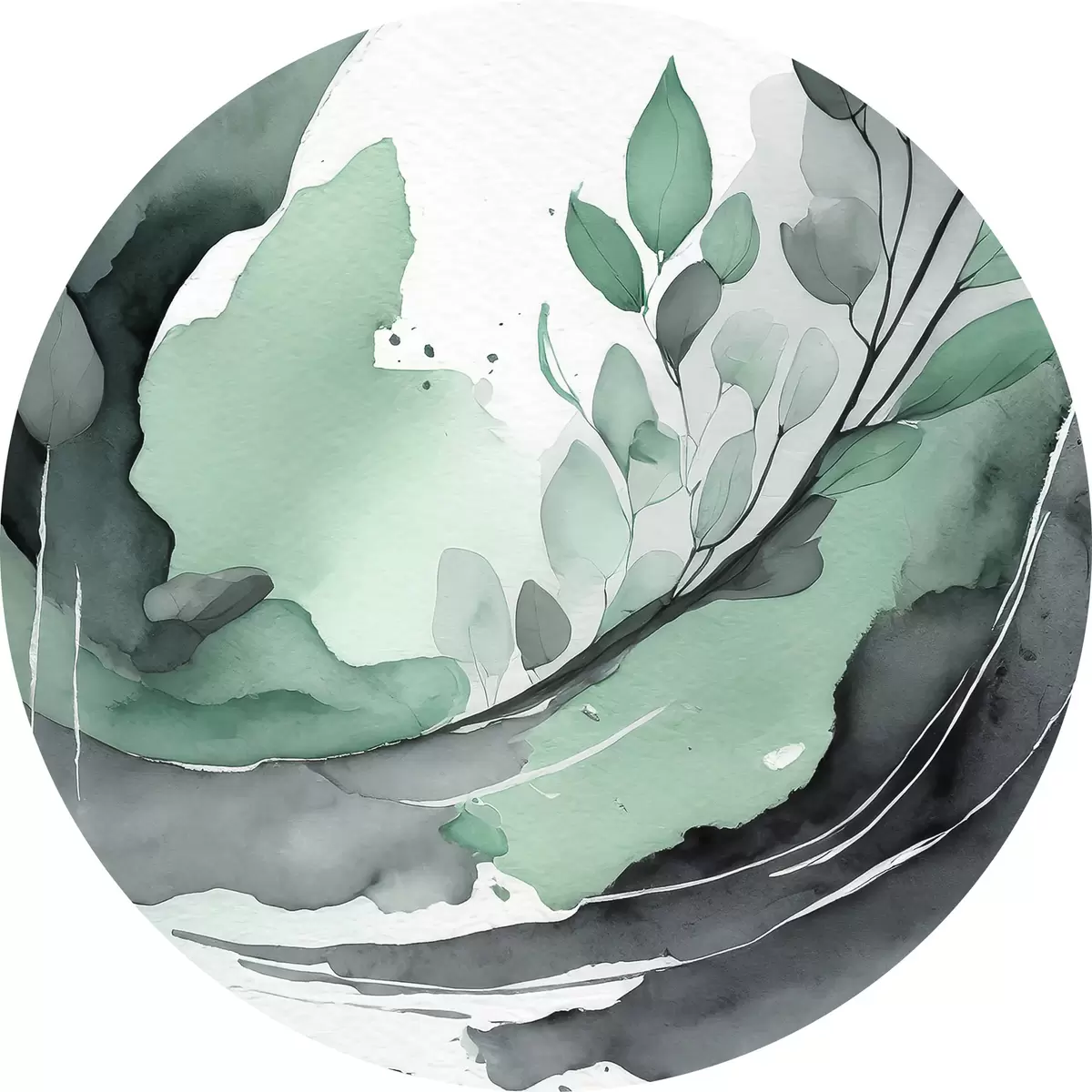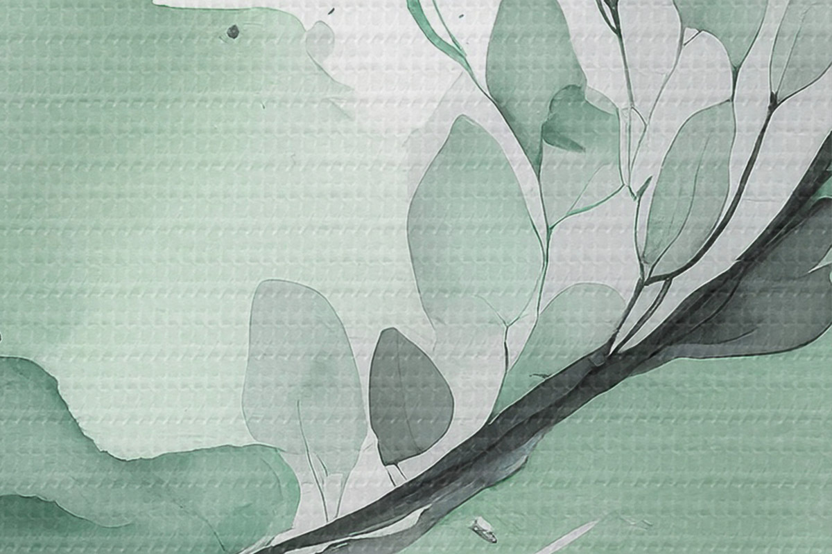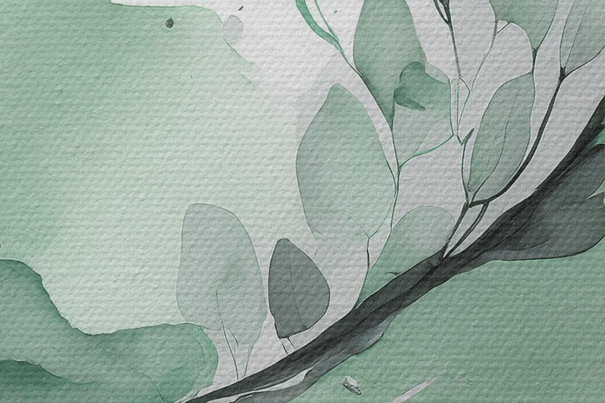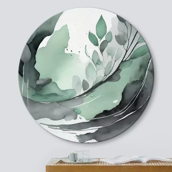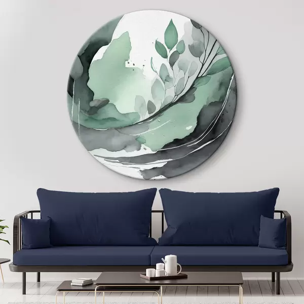 Pilt Abstraktne akvarelljoonistus taimega, looduslikud rohelised ja hallid värvid Nr r36502