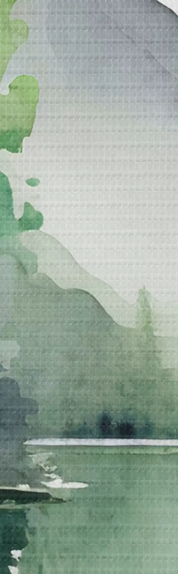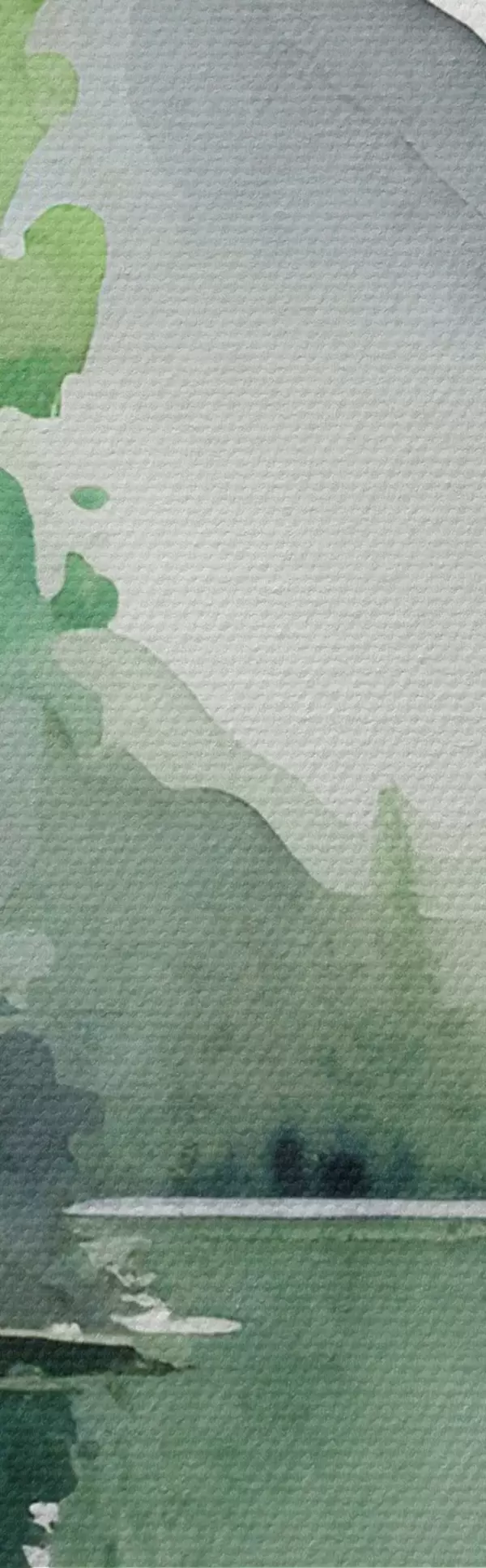 Ümmargused maalid Akvarellmaastik järve ja metsaga, kevad, looduslikud rohelised pehmed värvid r36503