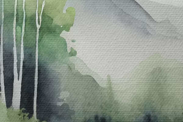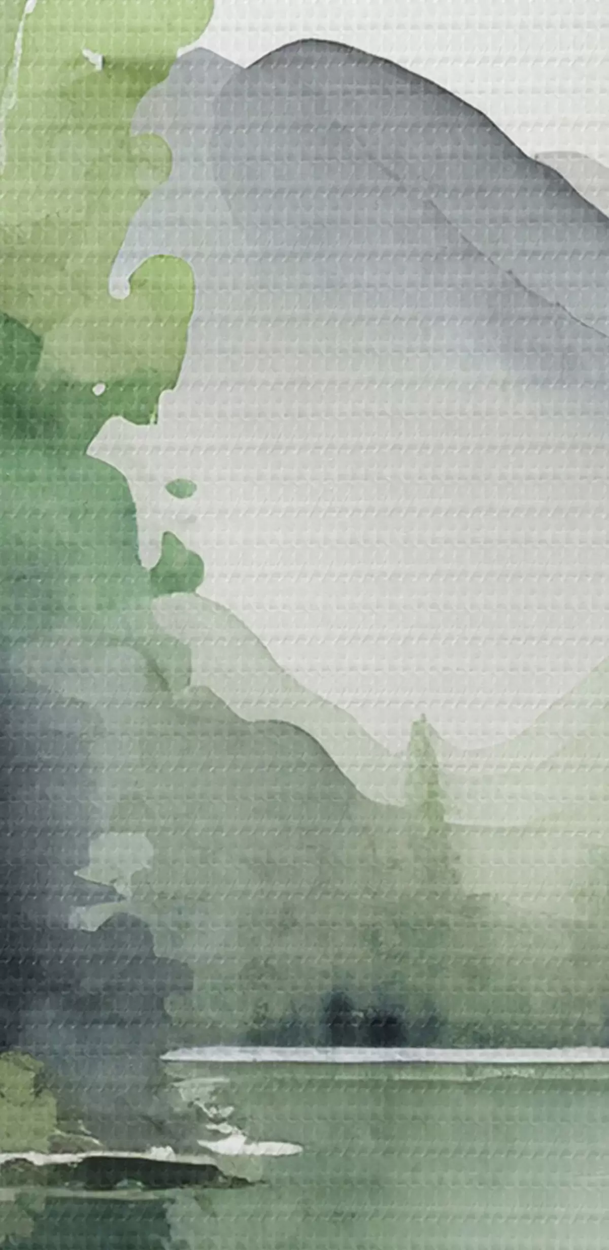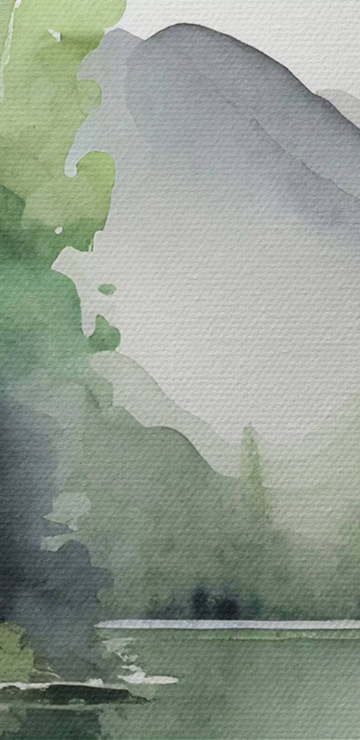 Pilt Akvarellmaastik järve ja metsaga, kevad, looduslikud rohelised pehmed värvid Nr r36503