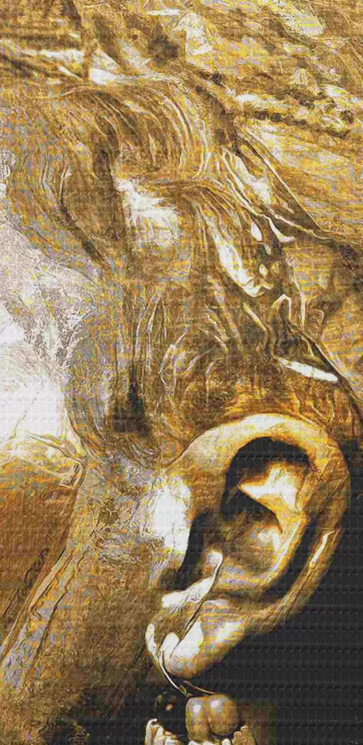 Selle lõuendi peenike niidipunus meenutab professionaalse kunstniku lõuendi pinda.