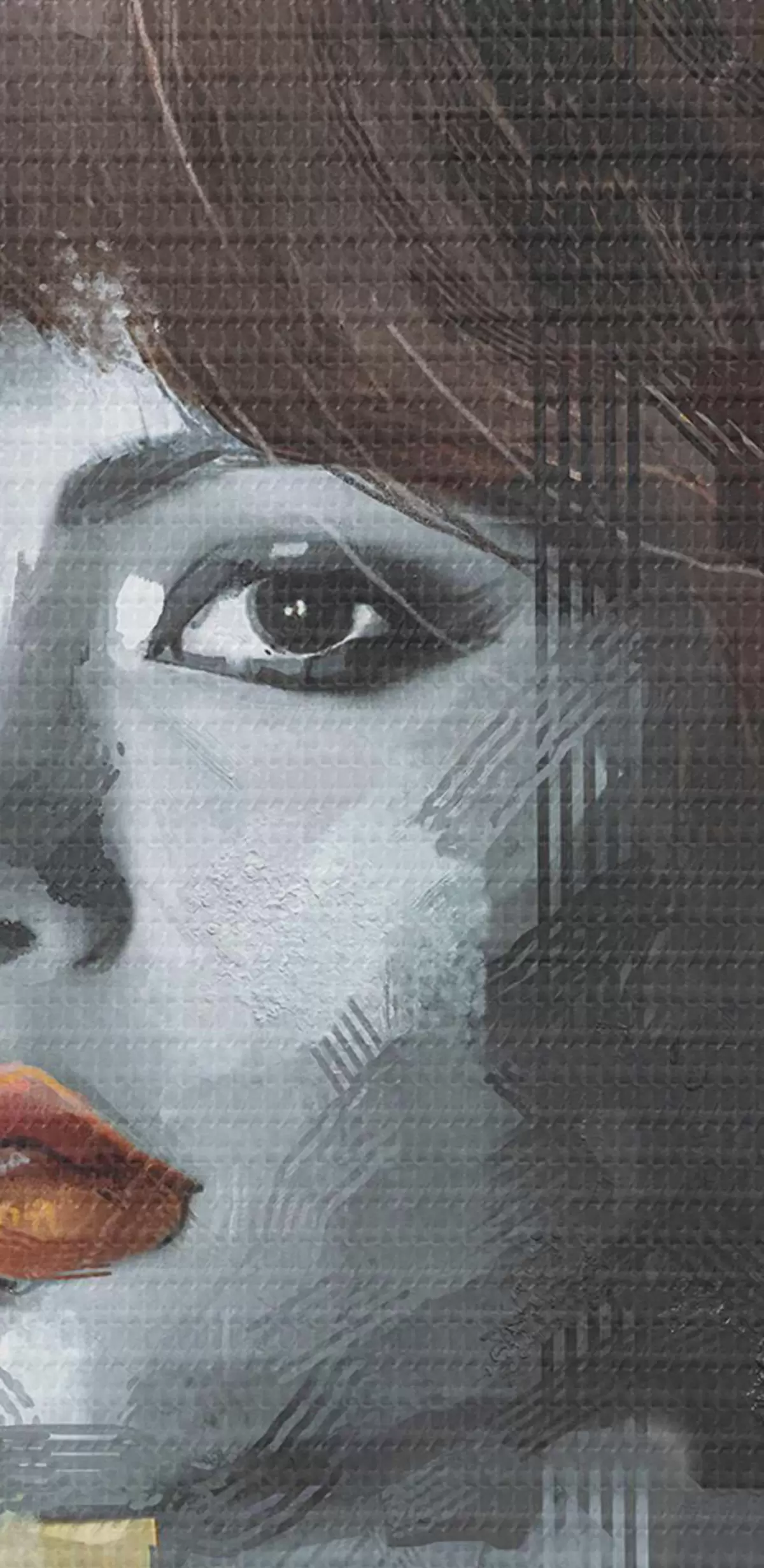 Selle lõuendi peenike niidipunus meenutab professionaalse kunstniku lõuendi pinda.