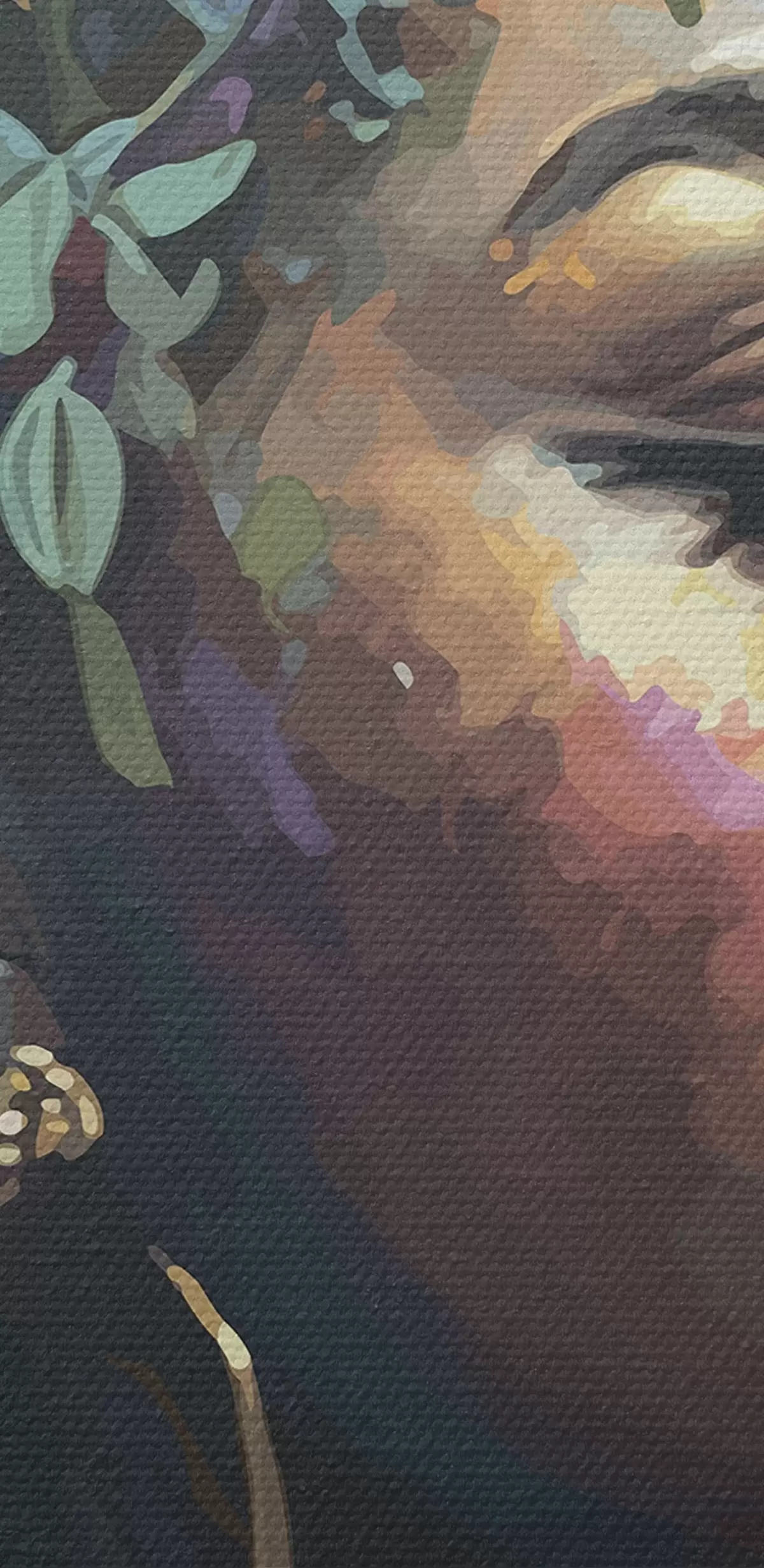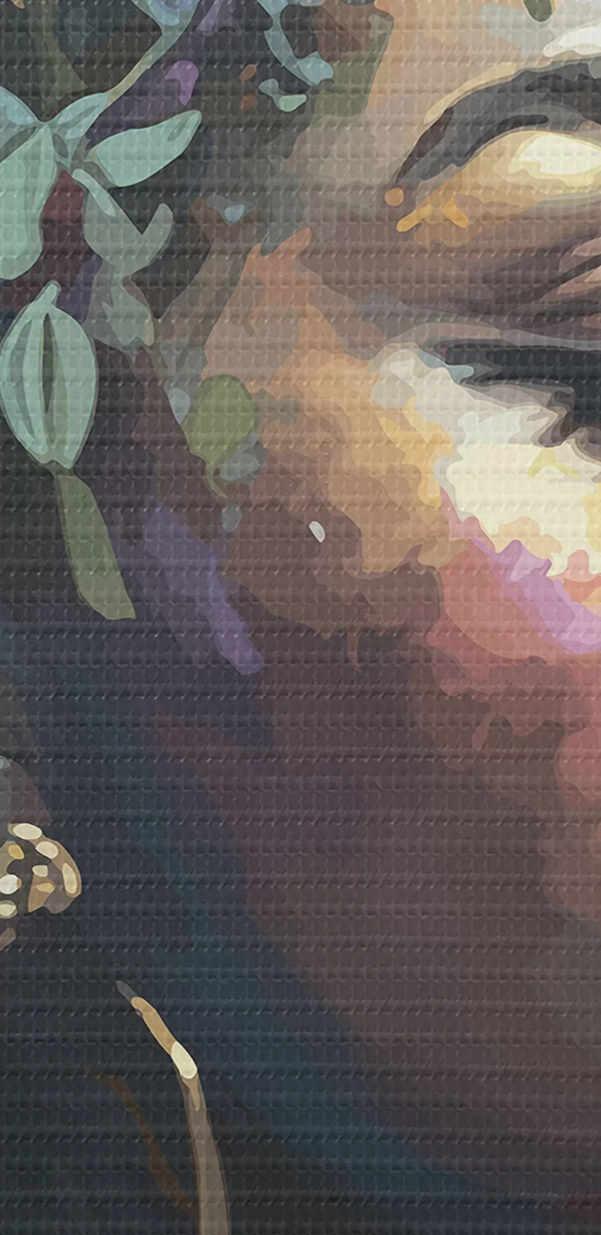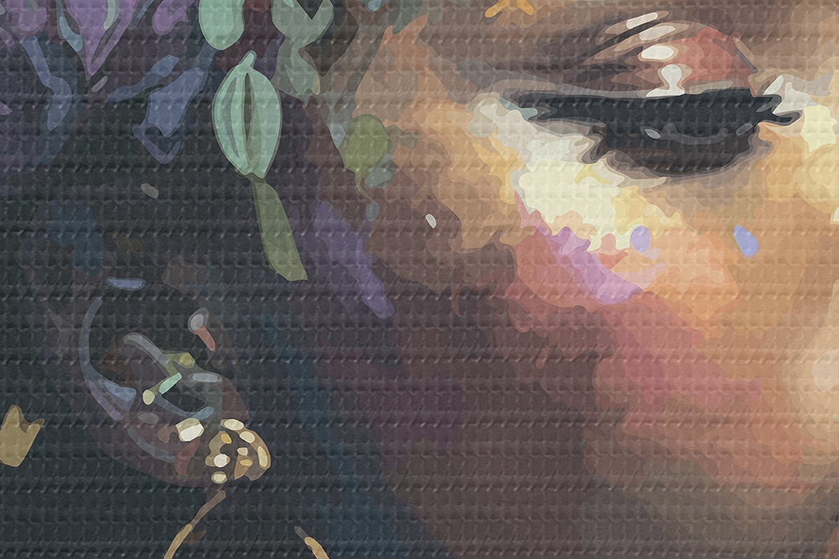 Selle lõuendi peenike niidipunus meenutab professionaalse kunstniku lõuendi pinda.