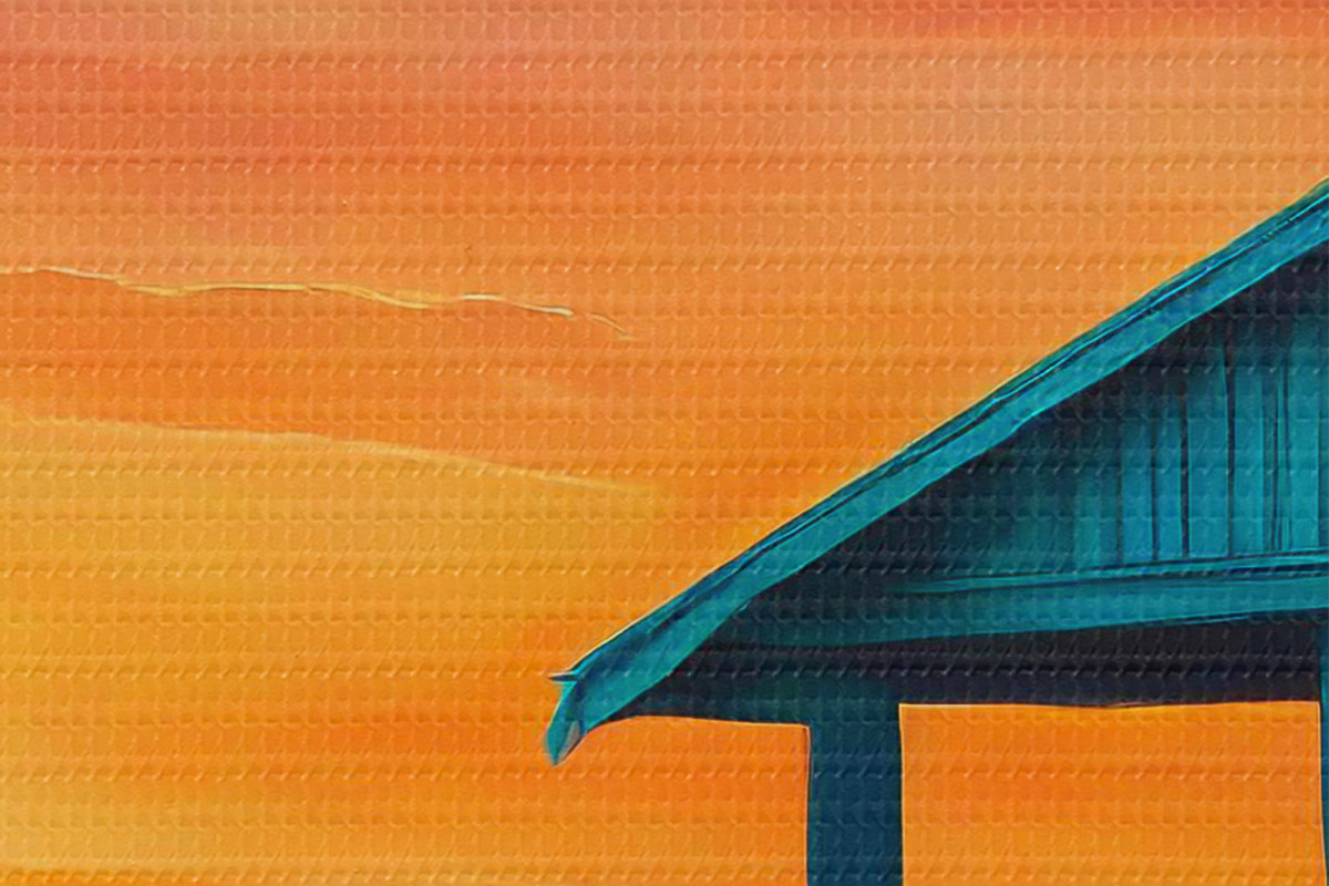 Selle lõuendi peenike niidipunus meenutab professionaalse kunstniku lõuendi pinda.