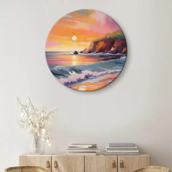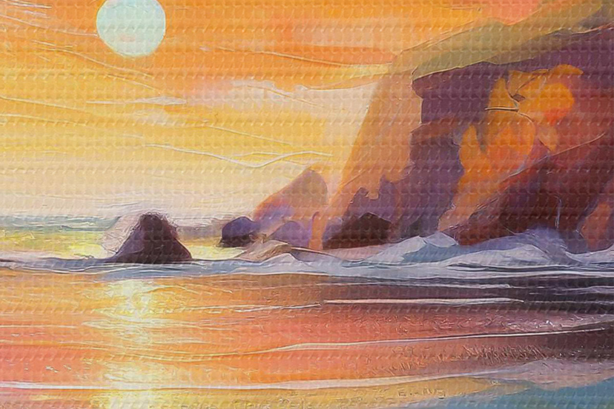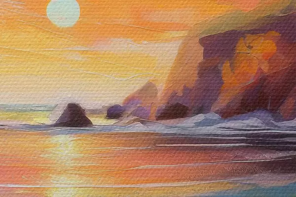 Pilt Päikesetõus rannikul, merelained, erksad pintslitõmbed, akrüül Nr r36581