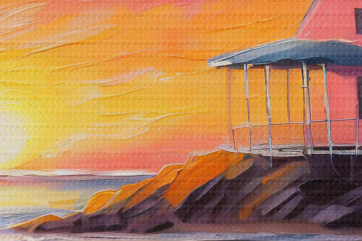 Selle lõuendi peenike niidipunus meenutab professionaalse kunstniku lõuendi pinda.