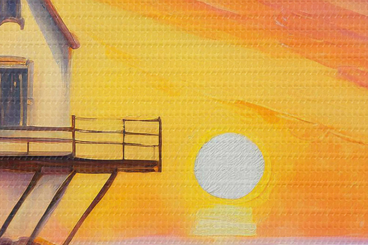 Selle lõuendi peenike niidipunus meenutab professionaalse kunstniku lõuendi pinda.