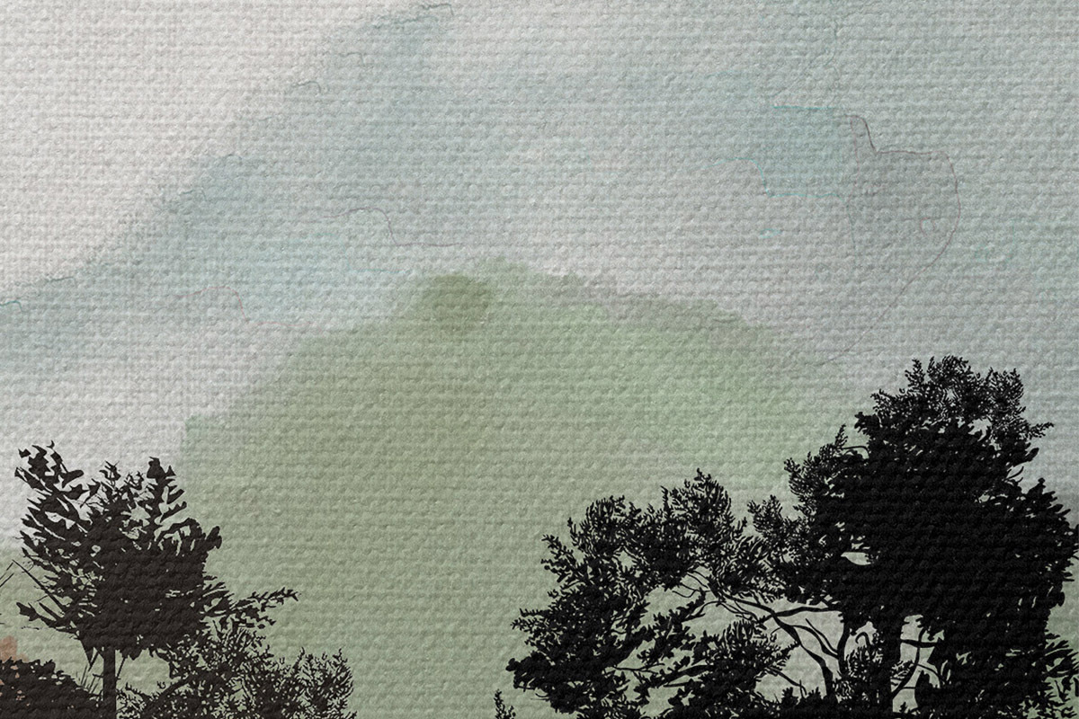 Pilt Akvarell mägimaastik koos puudega Nr r36603