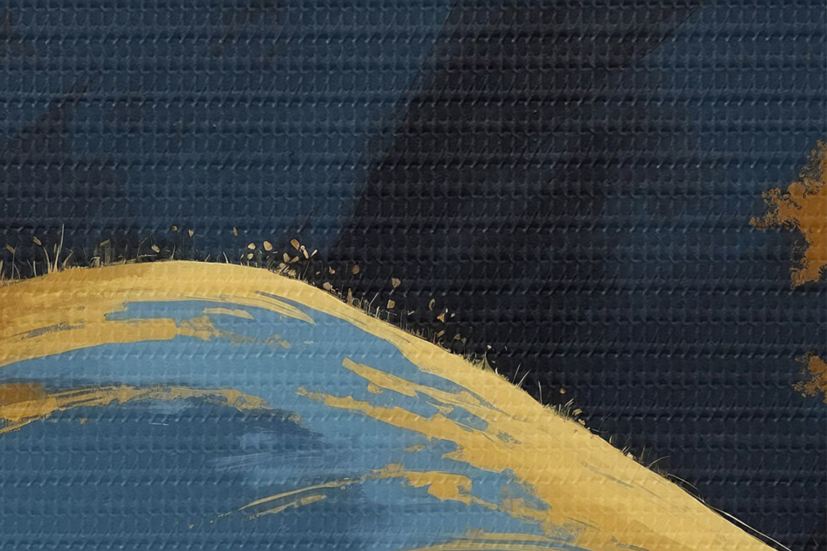 Selle lõuendi peenike niidipunus meenutab professionaalse kunstniku lõuendi pinda.
