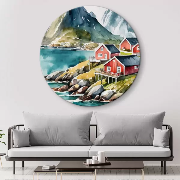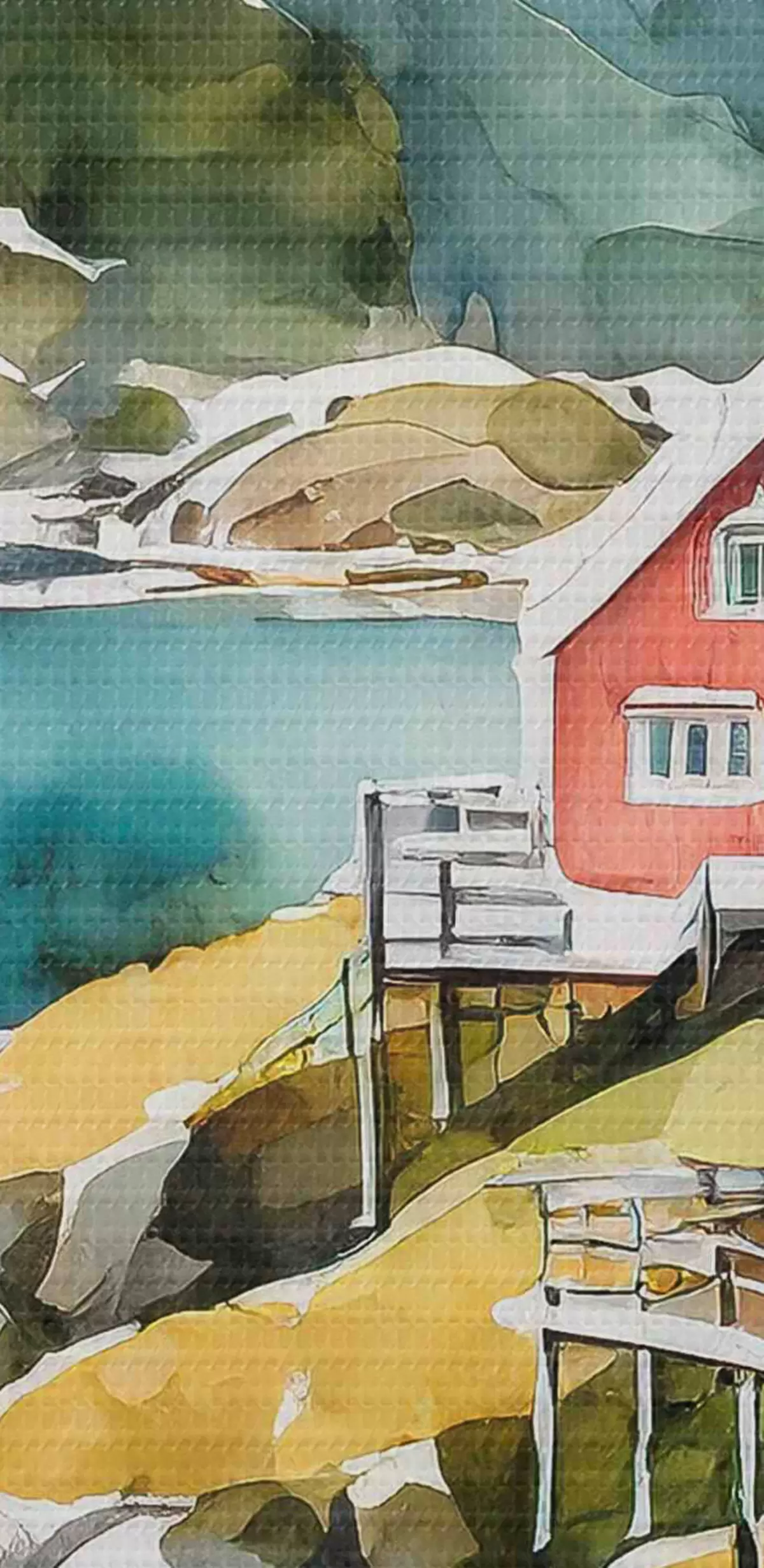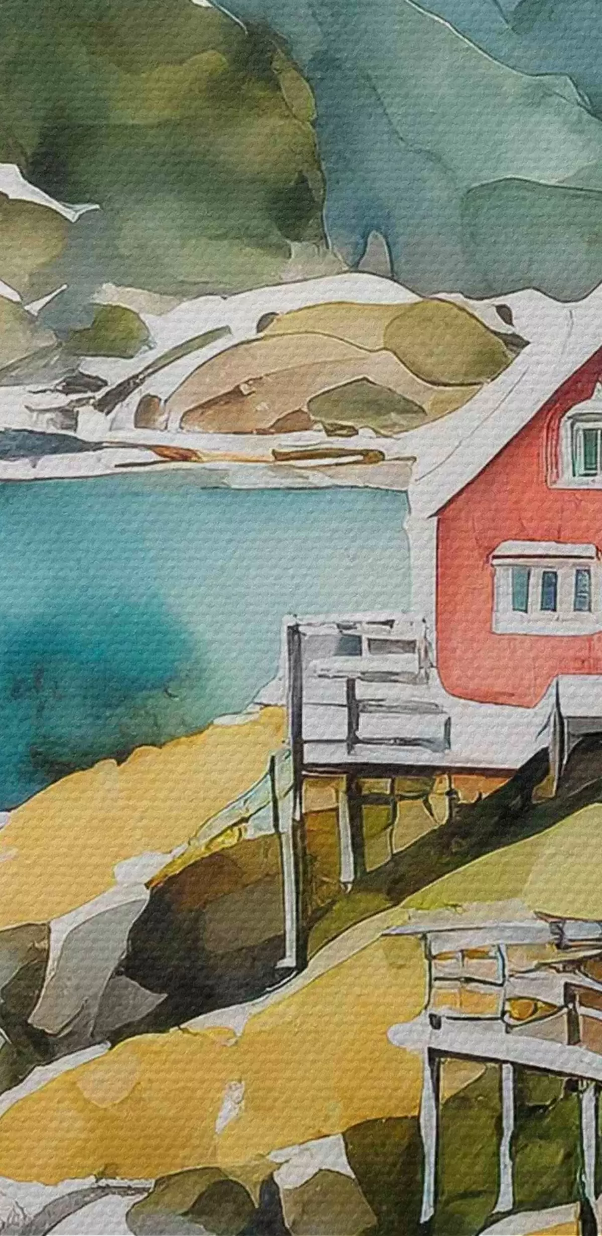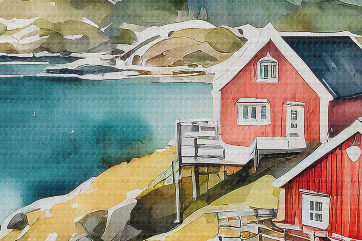 Pilt Akvarell majadest künkal veehoidla kõrval Nr r36678
