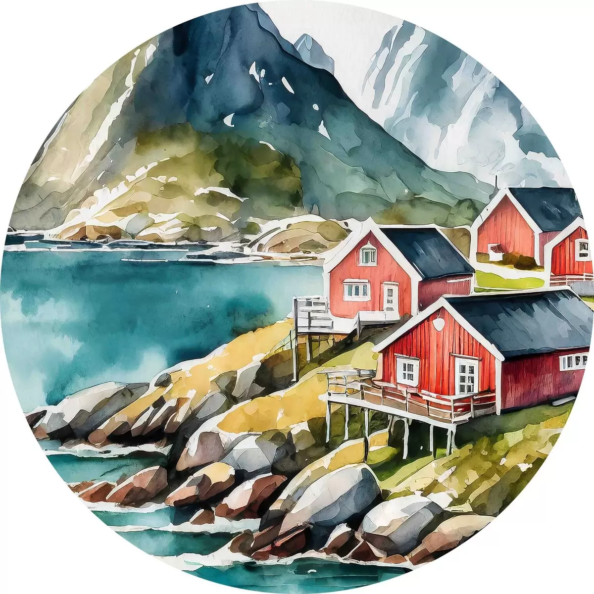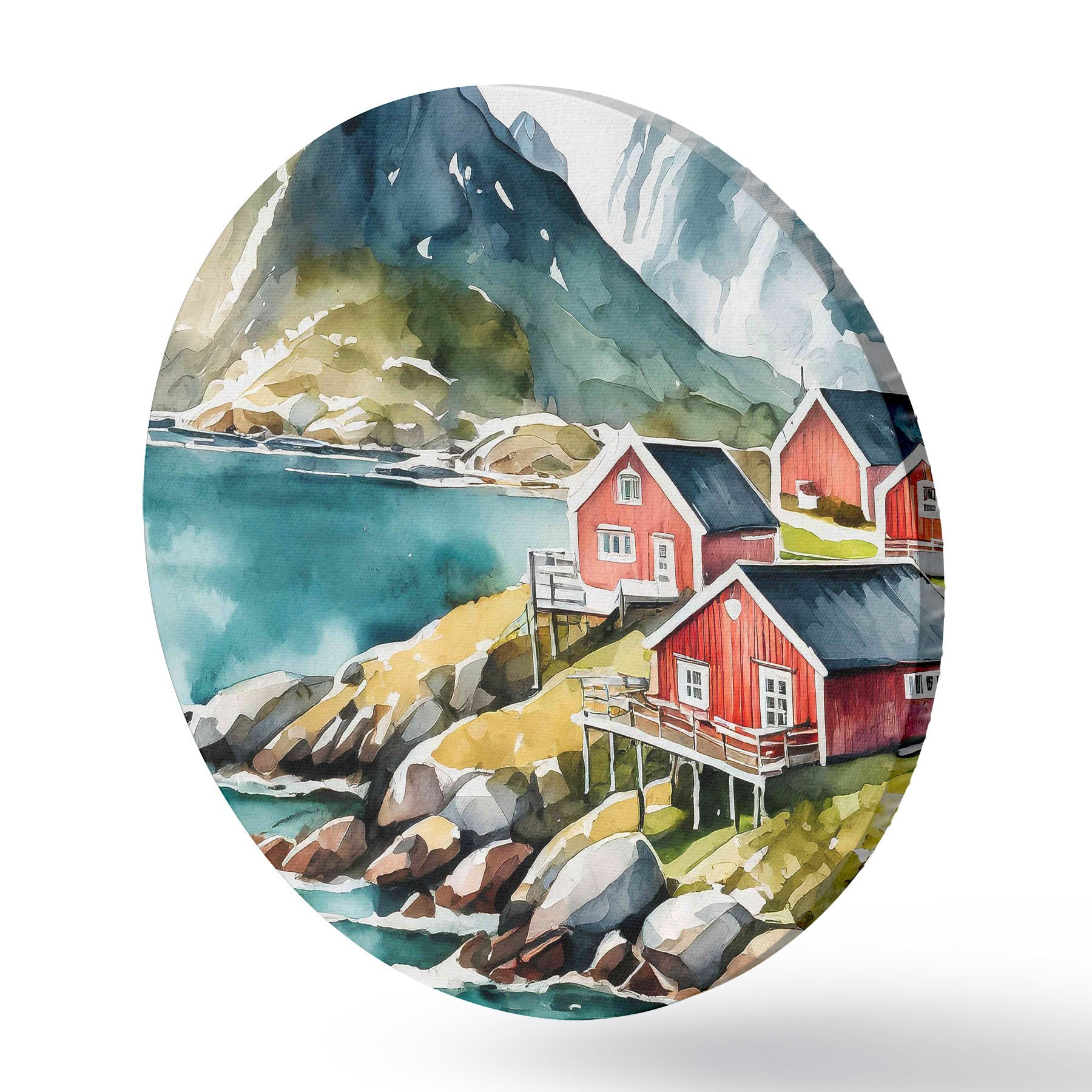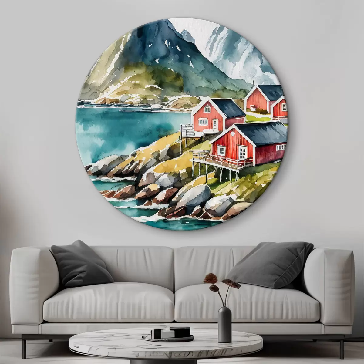 Pilt Akvarell majadest künkal veehoidla kõrval Nr r36678