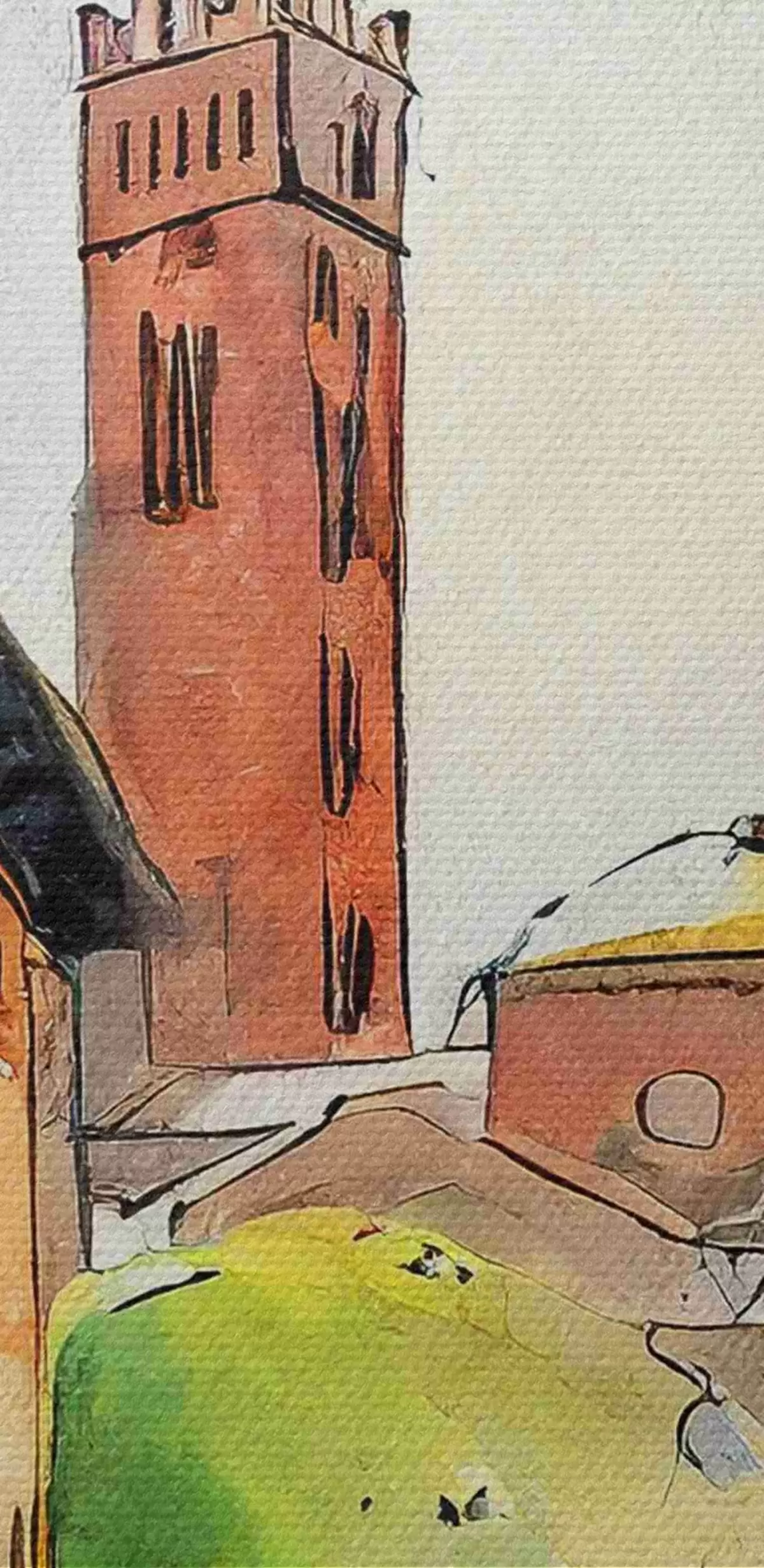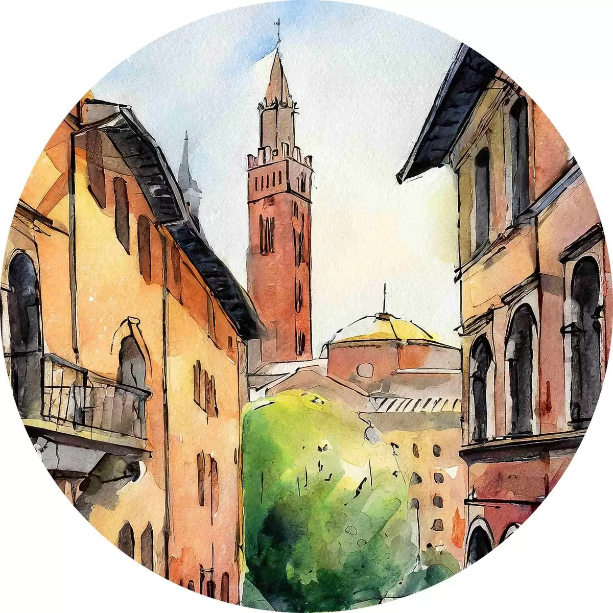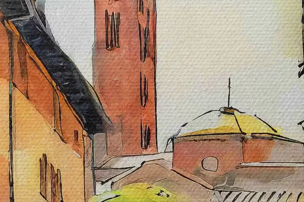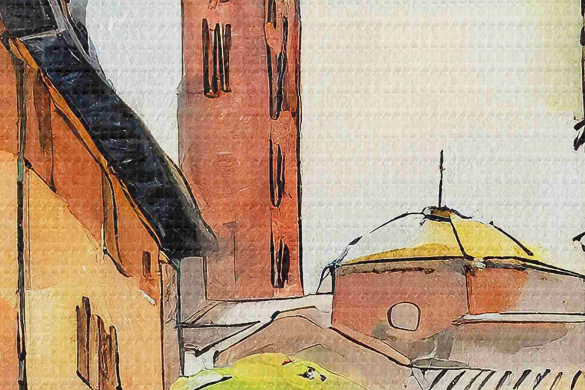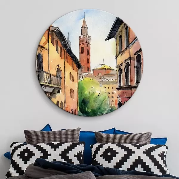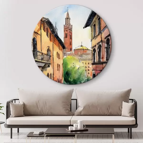 Pilt Akvarellmaal tänava hoonete ja puudega Nr r36684