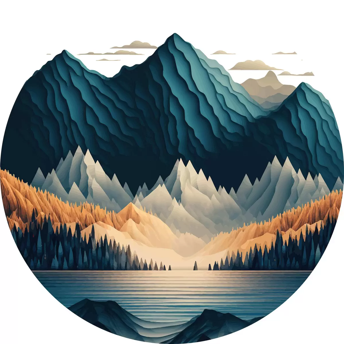 Pilt Mäeahelik koos puude ja järvega Nr r36697