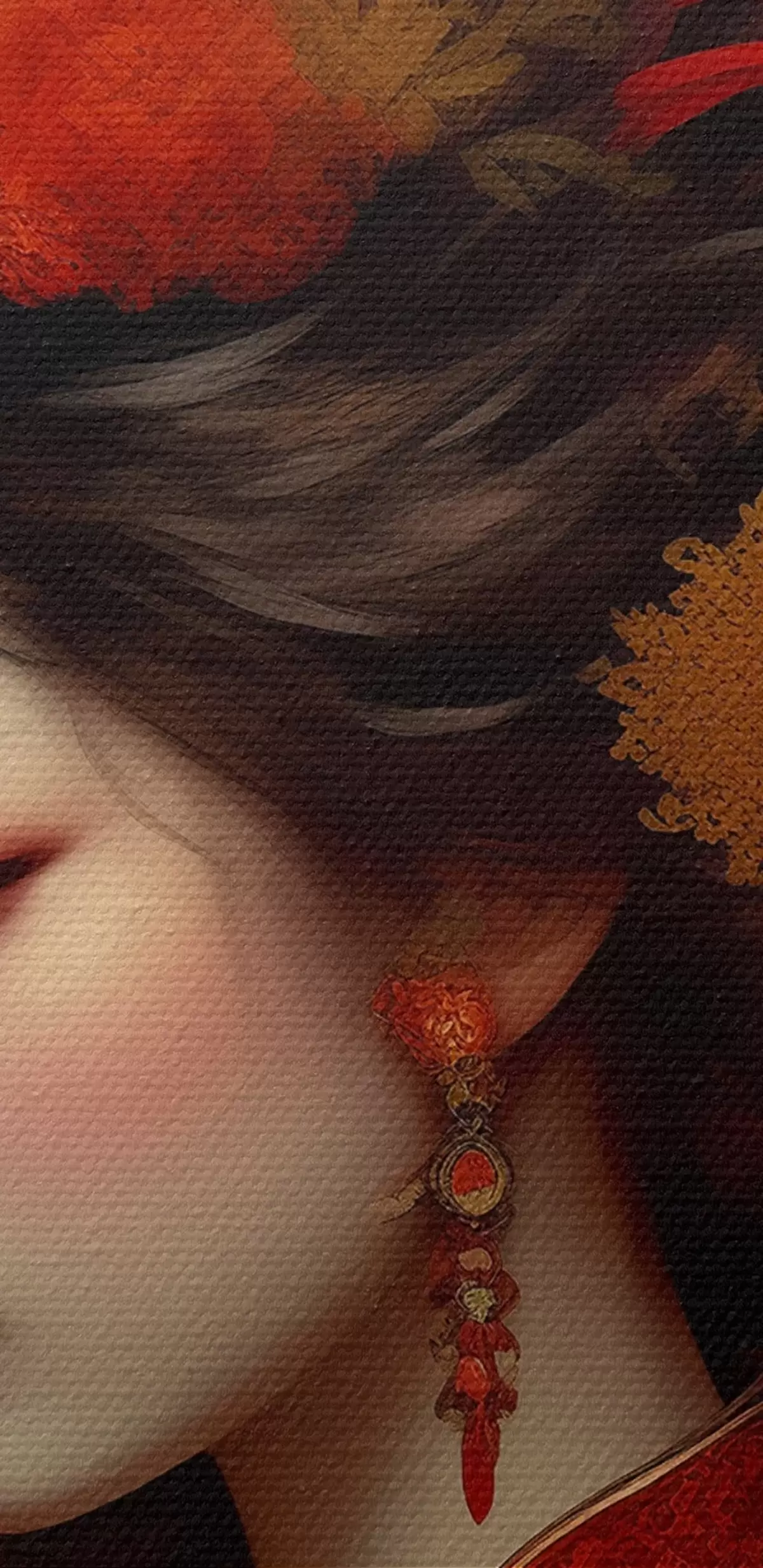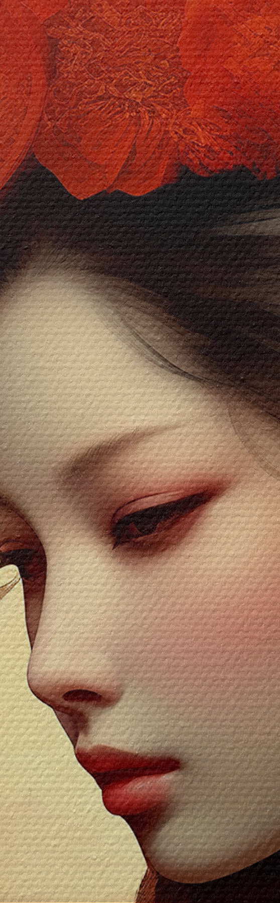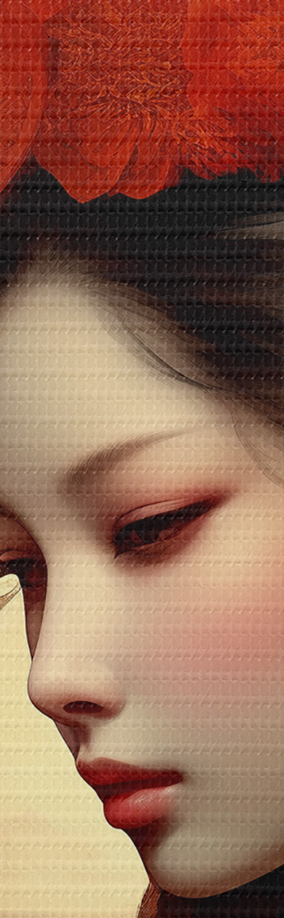 Selle lõuendi peenike niidipunus meenutab professionaalse kunstniku lõuendi pinda.