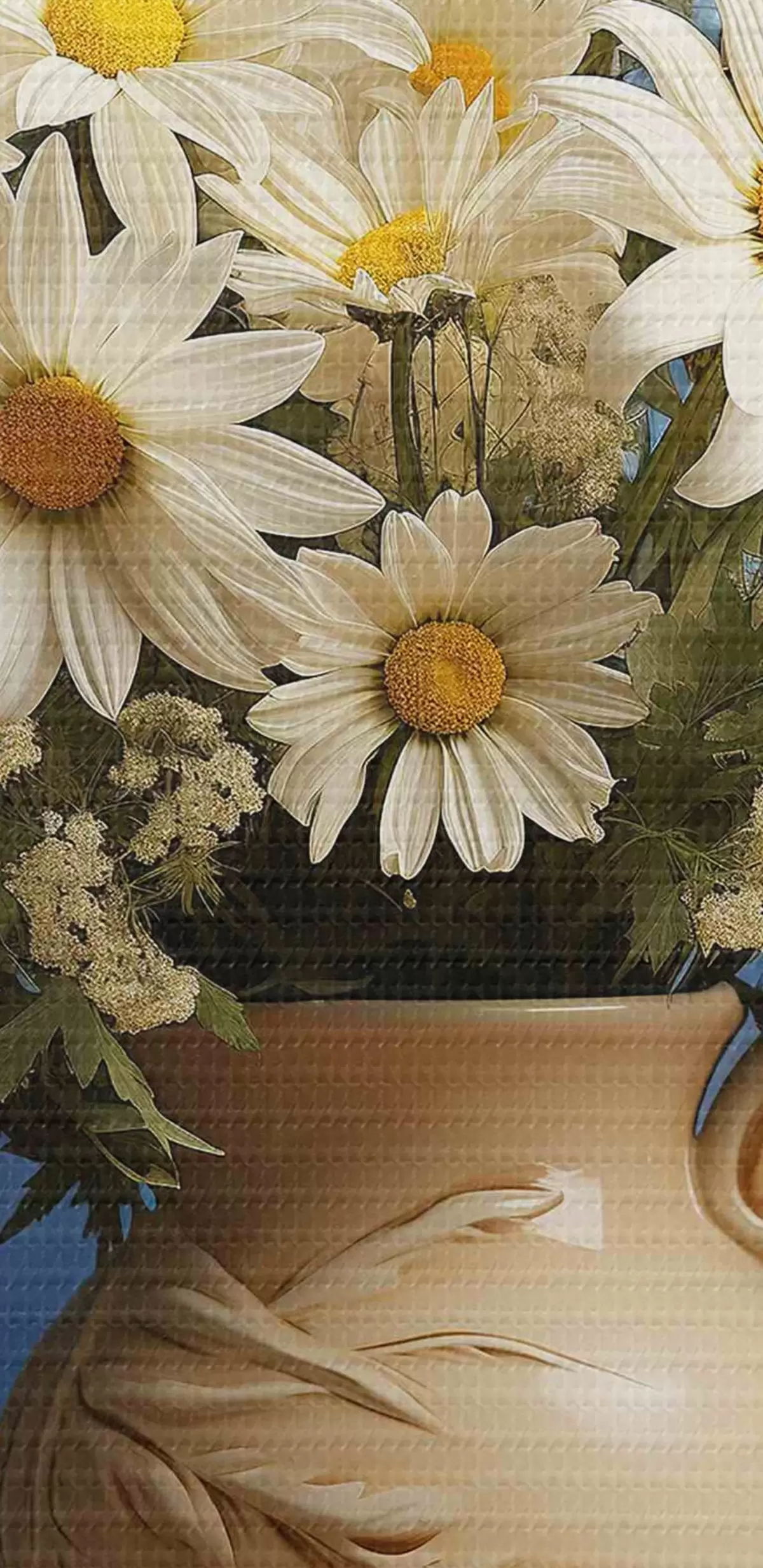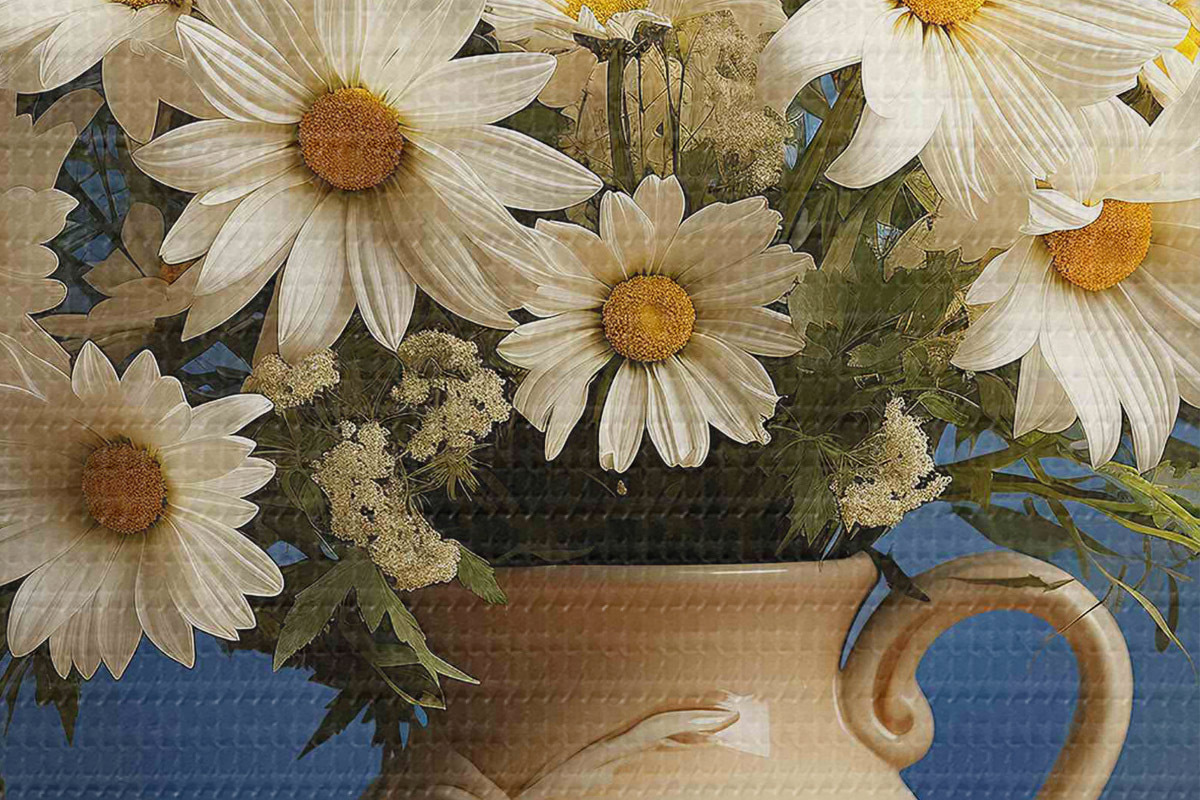 Selle lõuendi peenike niidipunus meenutab professionaalse kunstniku lõuendi pinda.