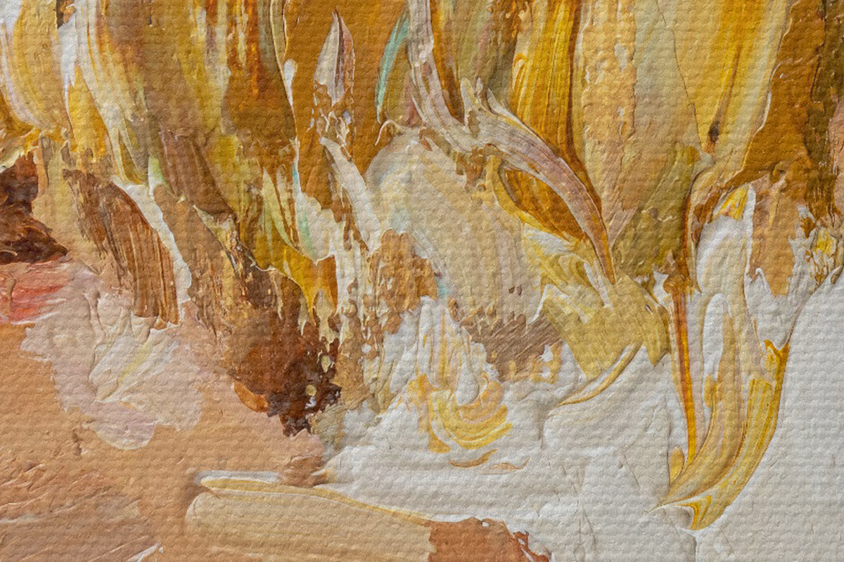 Maali võib riputada kohe pärast selle kättesaamist. Maal on pingutatud 2 cm laiusele puidust kandikule.