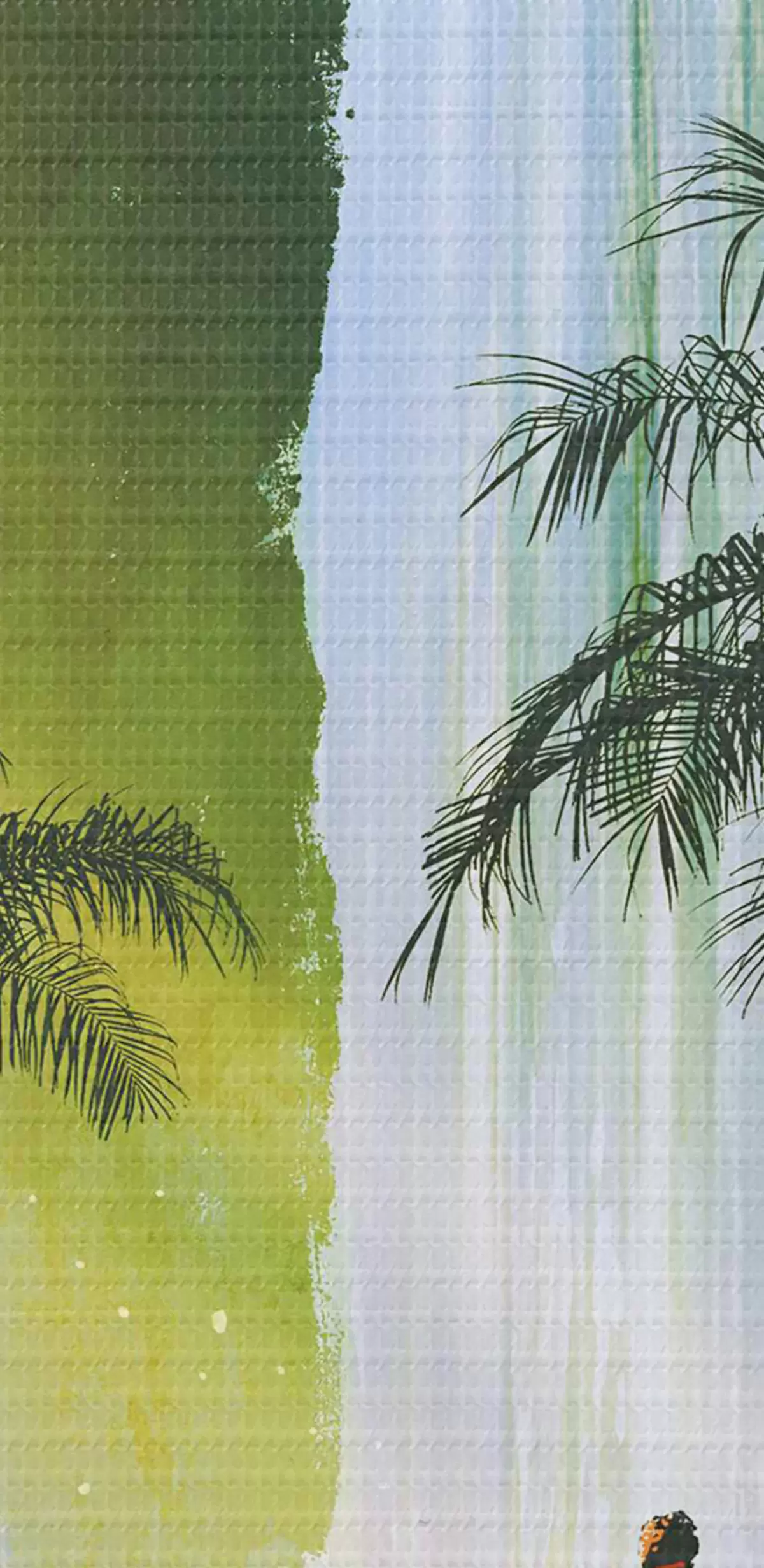 Selle lõuendi peenike niidipunus meenutab professionaalse kunstniku lõuendi pinda.