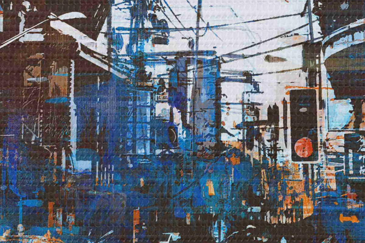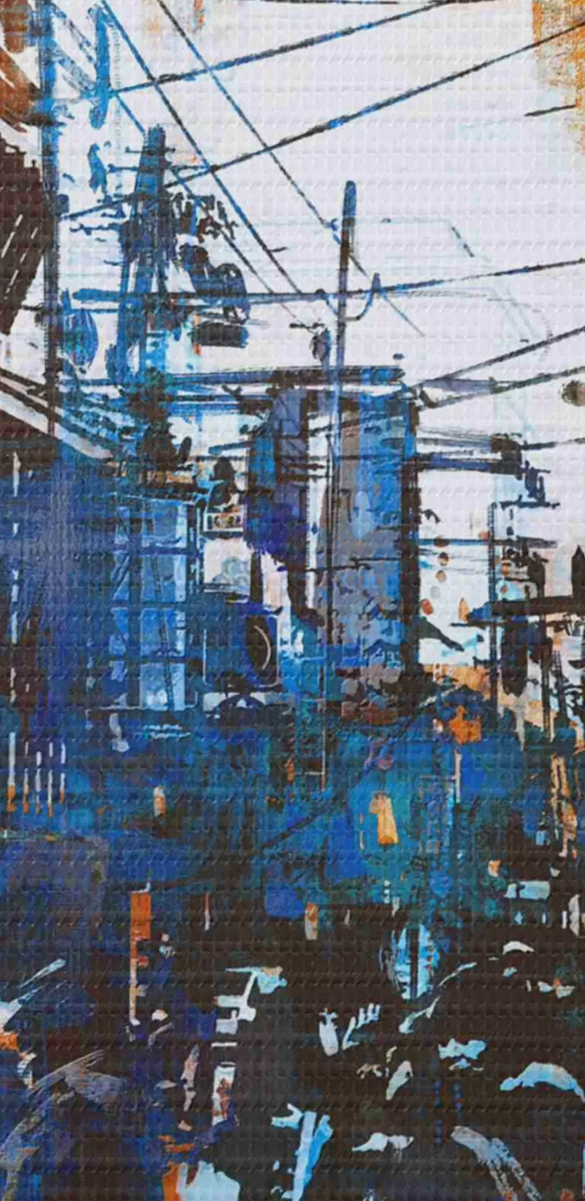 Selle lõuendi peenike niidipunus meenutab professionaalse kunstniku lõuendi pinda.