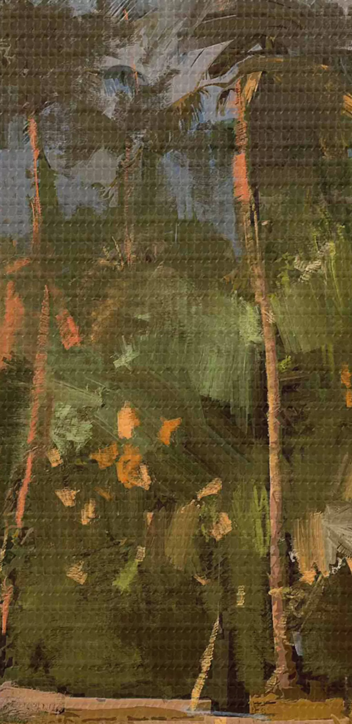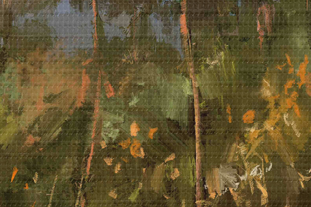 Selle lõuendi peenike niidipunus meenutab professionaalse kunstniku lõuendi pinda.