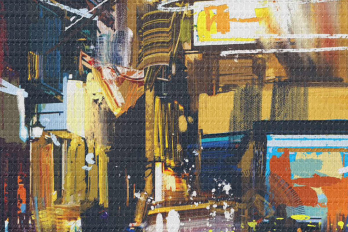 Selle lõuendi peenike niidipunus meenutab professionaalse kunstniku lõuendi pinda.