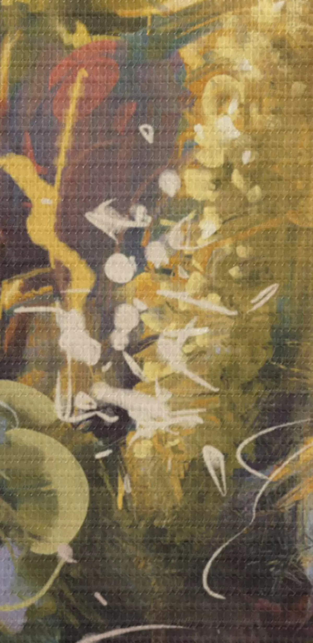 Selle lõuendi peenike niidipunus meenutab professionaalse kunstniku lõuendi pinda.