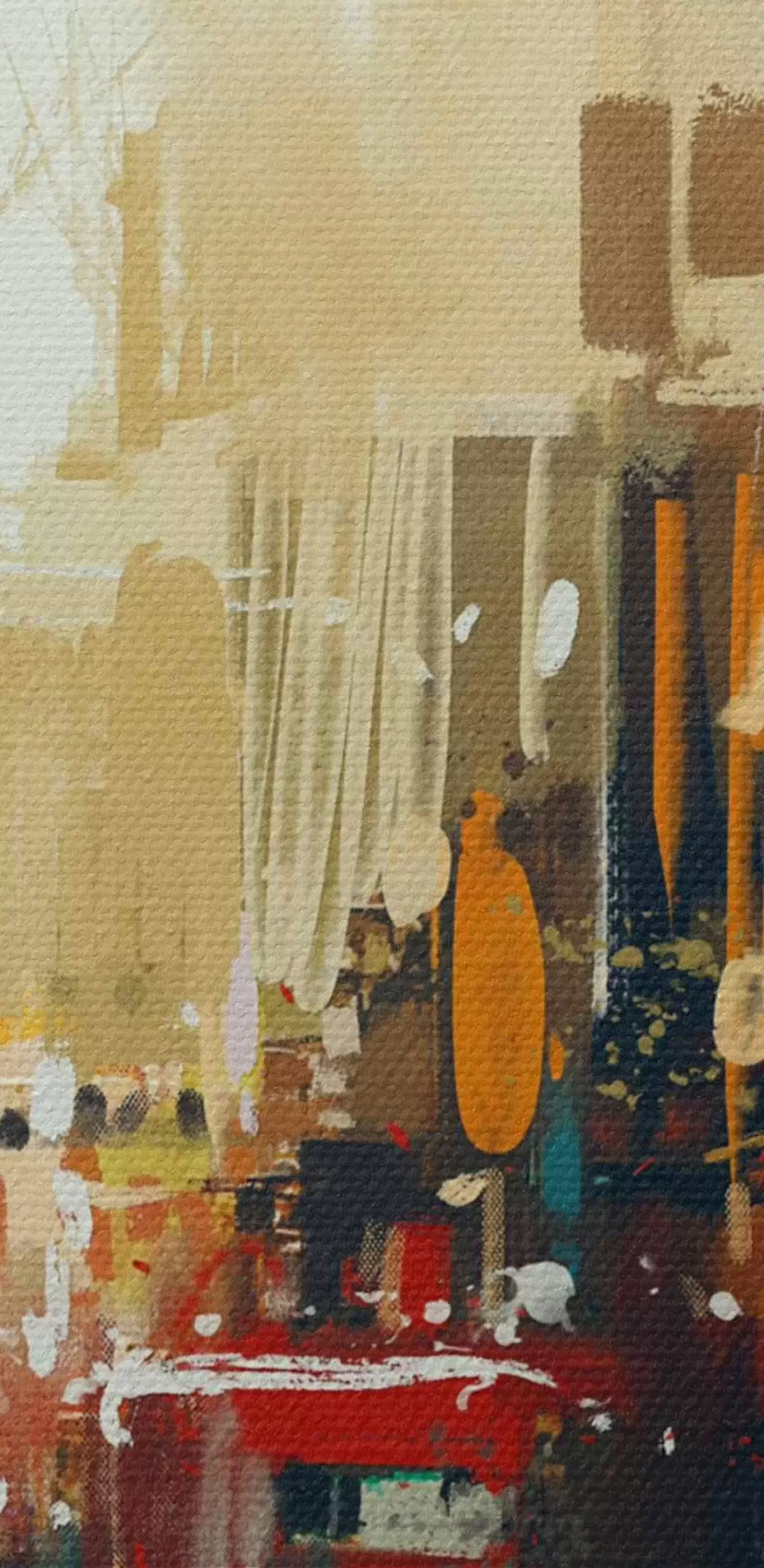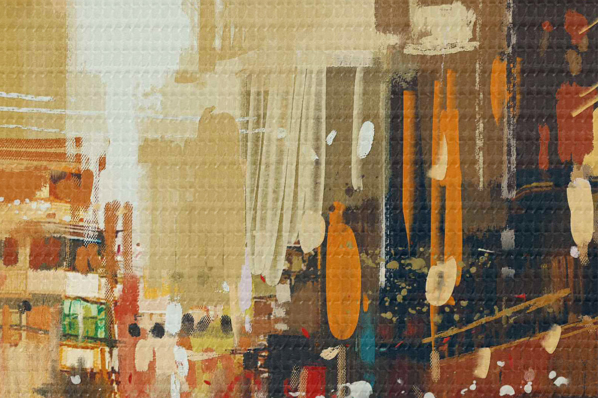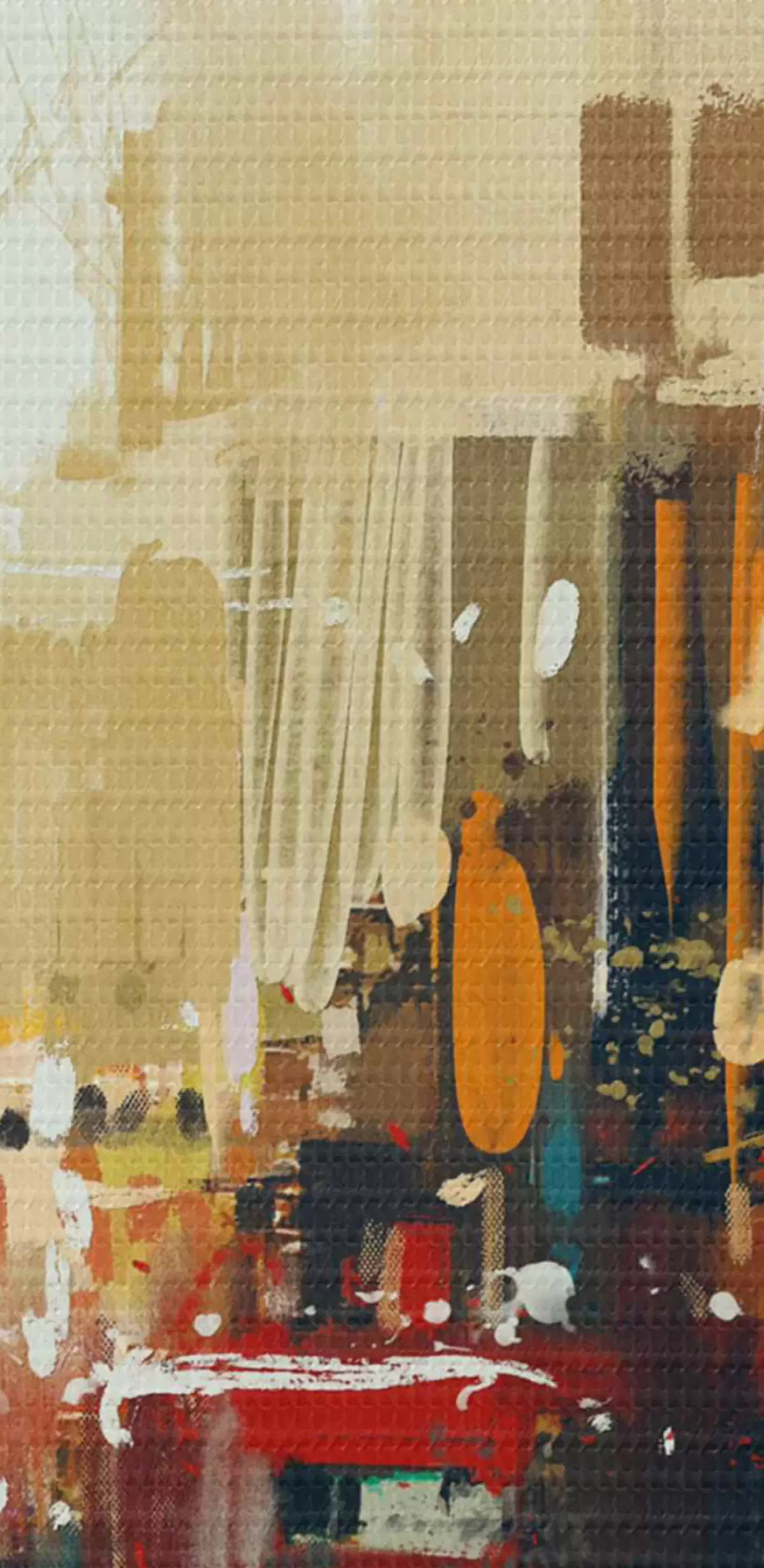 Selle lõuendi peenike niidipunus meenutab professionaalse kunstniku lõuendi pinda.