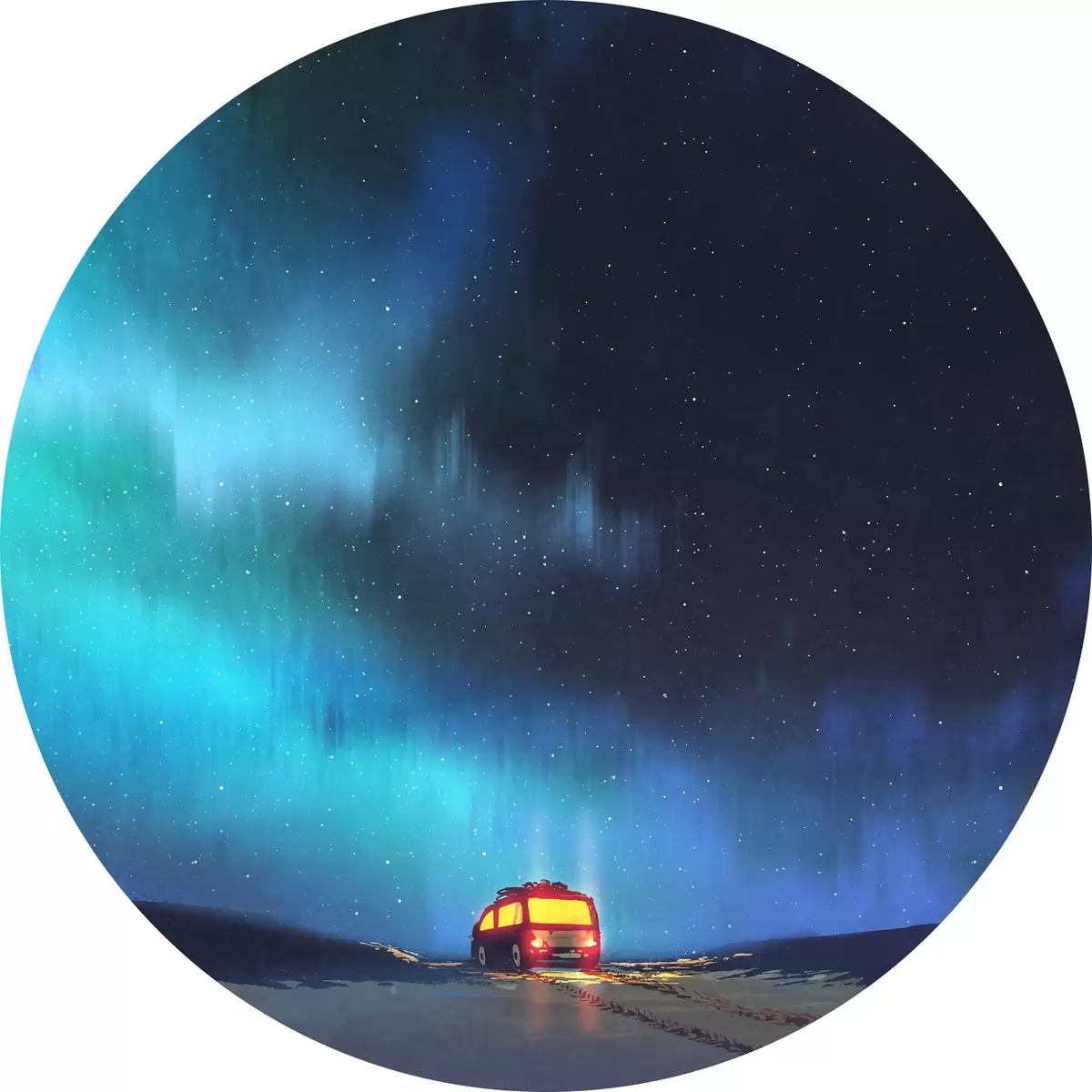 Pilt Buss lumisel teel koos tuledega taevas Nr r37111