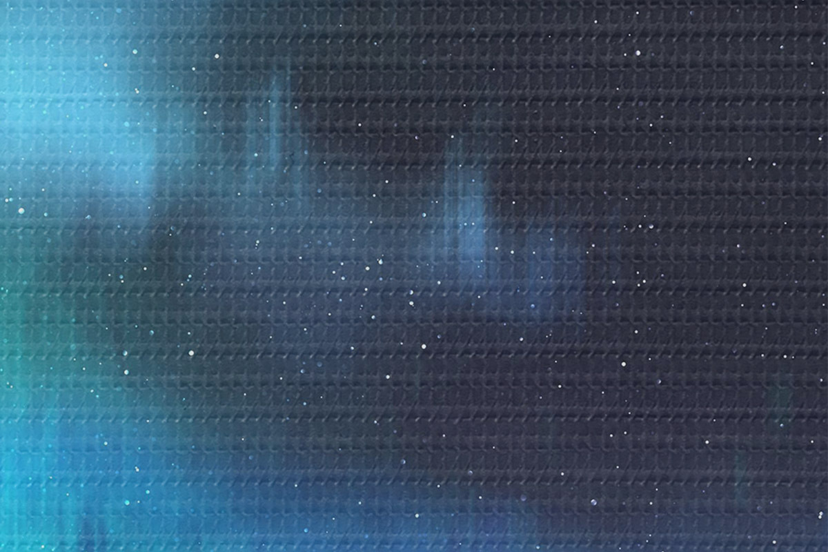 Selle lõuendi peenike niidipunus meenutab professionaalse kunstniku lõuendi pinda.