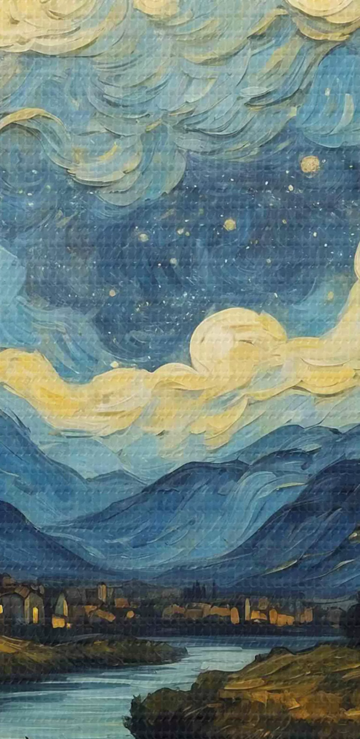 Selle lõuendi peenike niidipunus meenutab professionaalse kunstniku lõuendi pinda.