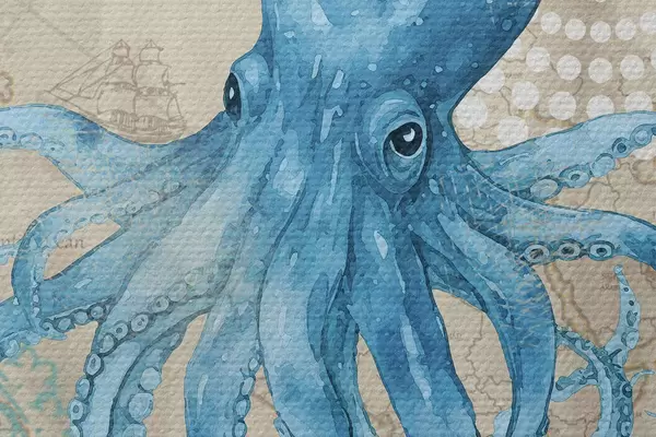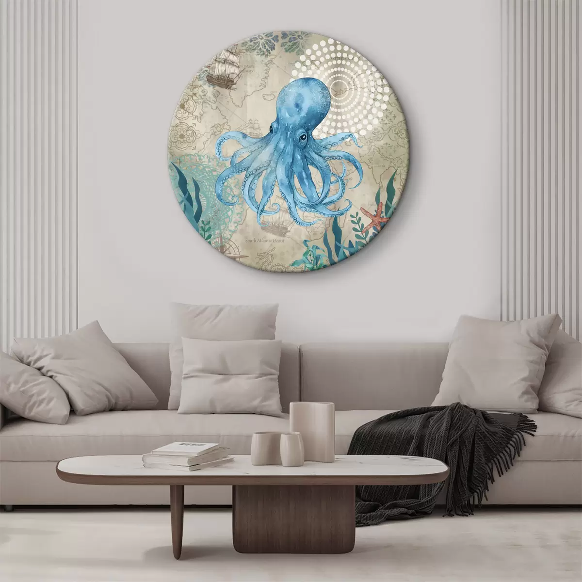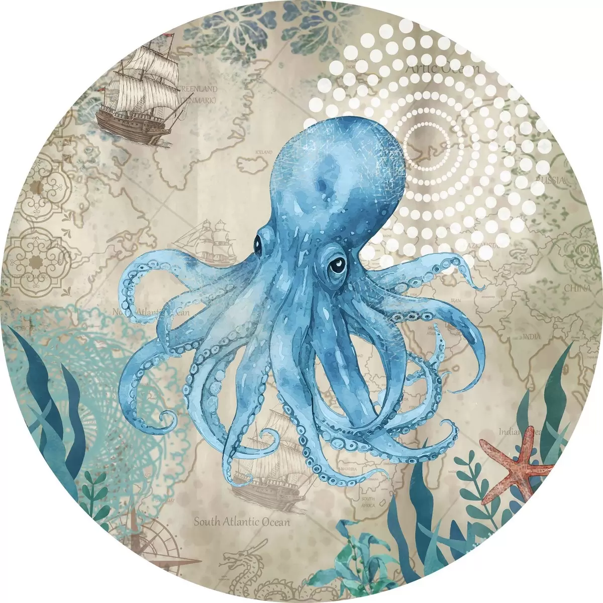 Pilt Sinine kaheksajalg koos ookeani kaardiga Nr r37154