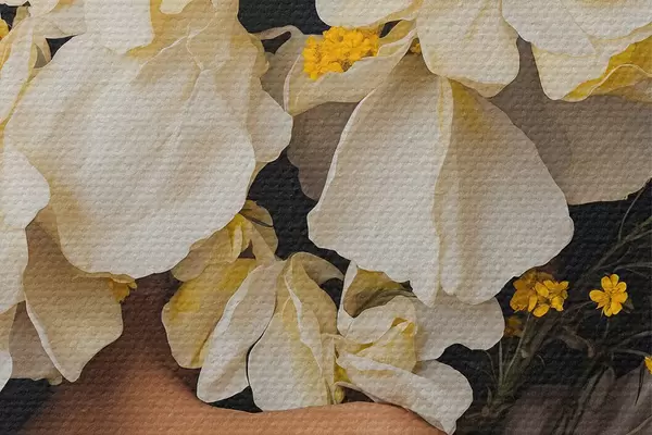 Pilt Naine kollaste lilledega mustal taustal Nr r37162
