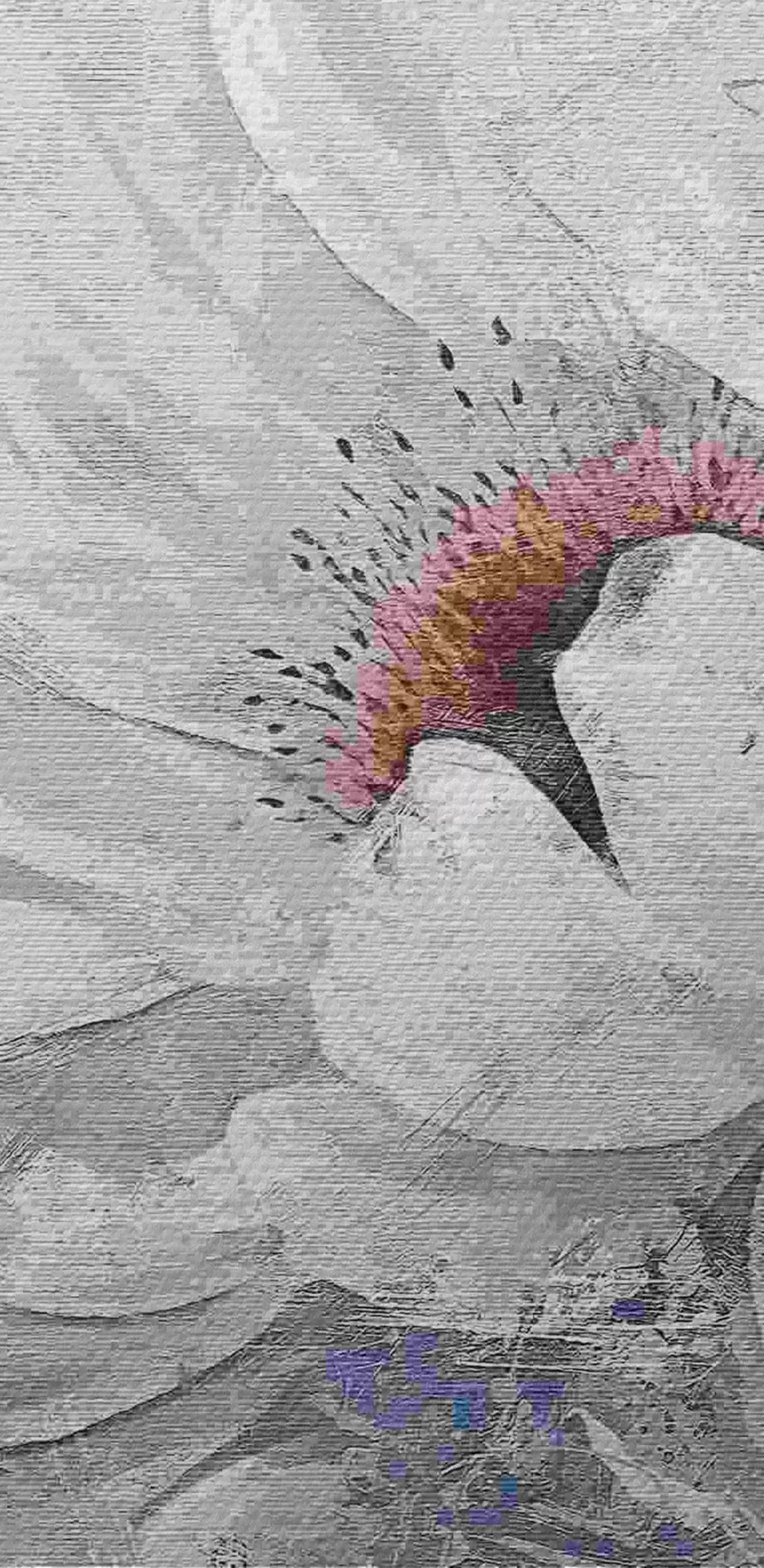 Selle lõuendi peenike niidipunus meenutab professionaalse kunstniku lõuendi pinda.