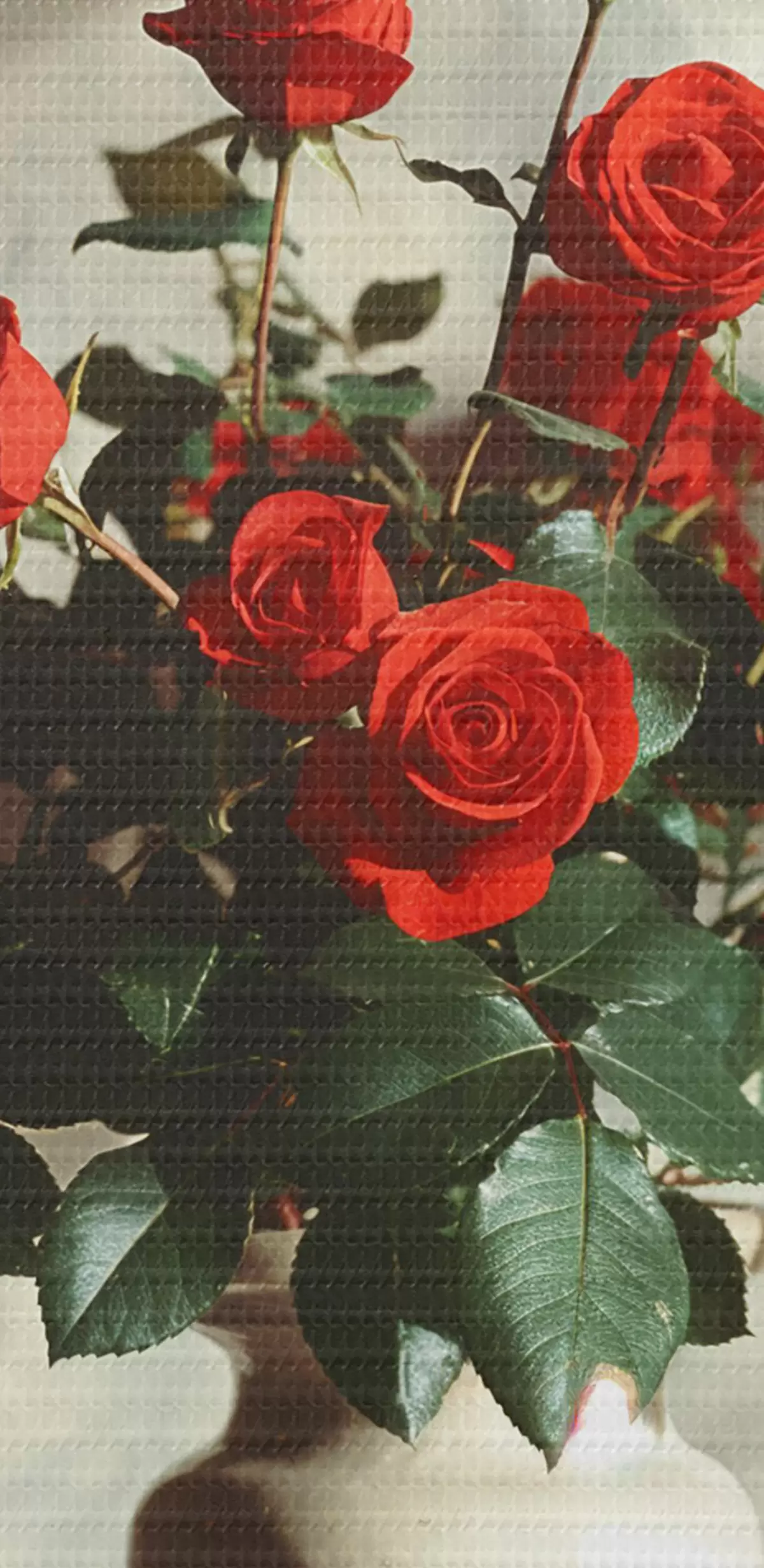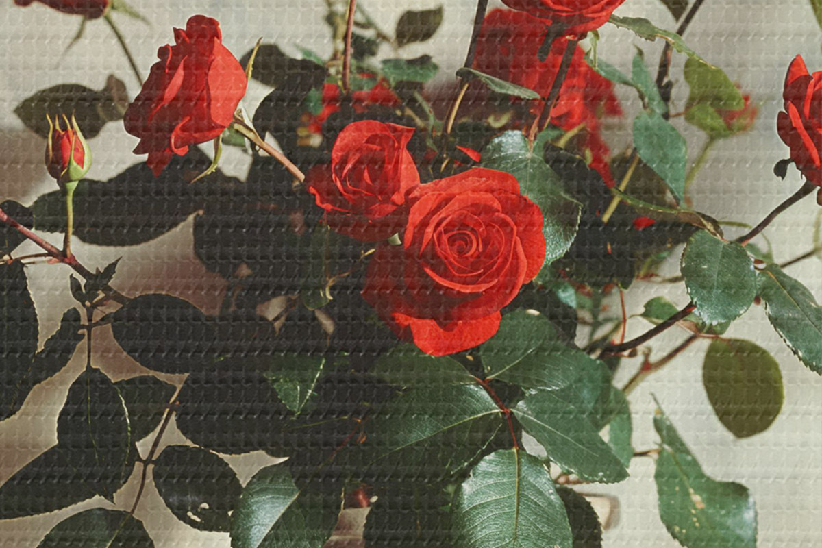 Selle lõuendi peenike niidipunus meenutab professionaalse kunstniku lõuendi pinda.