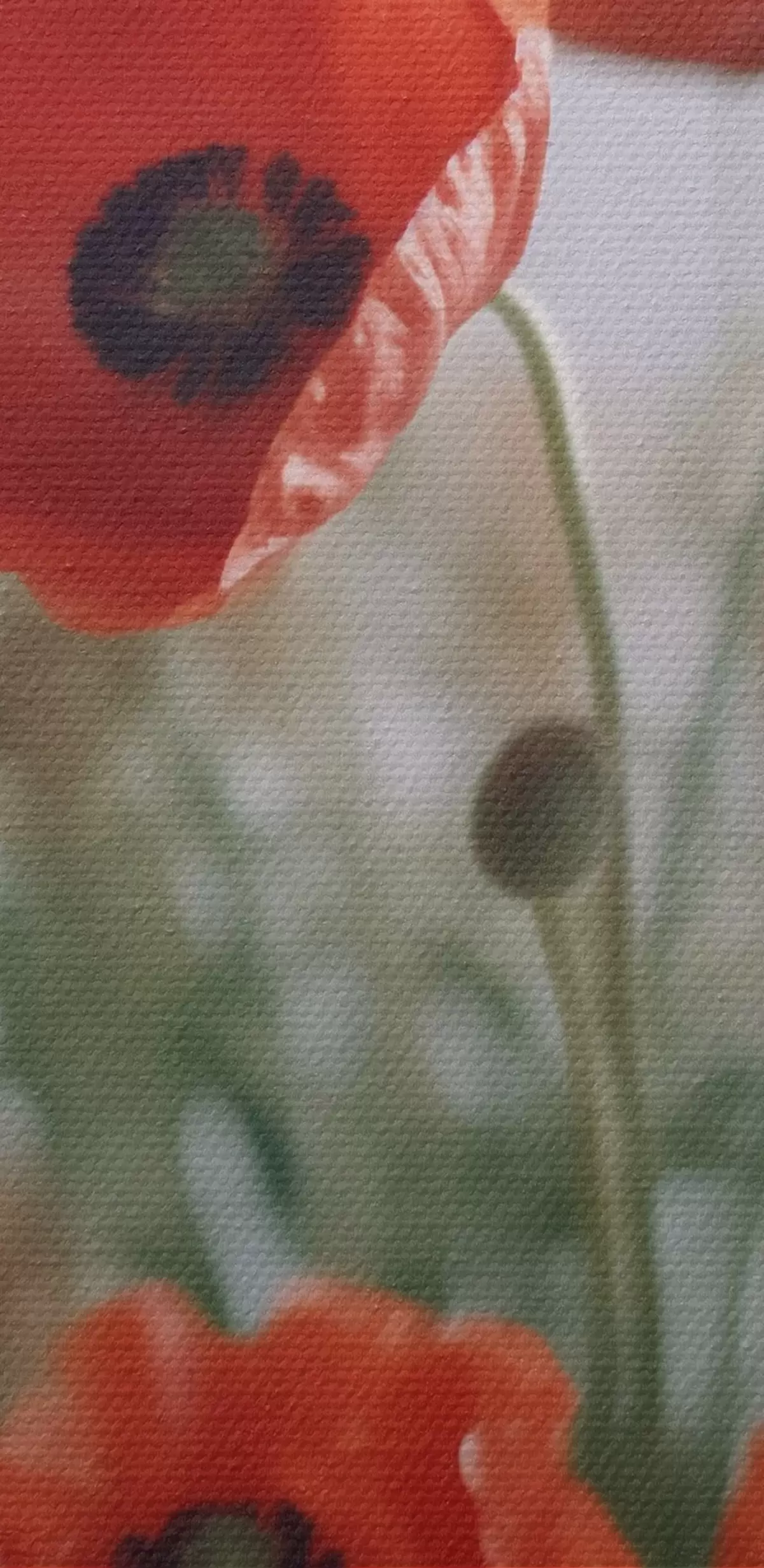 Selle lõuendi peenike niidipunus meenutab professionaalse kunstniku lõuendi pinda.