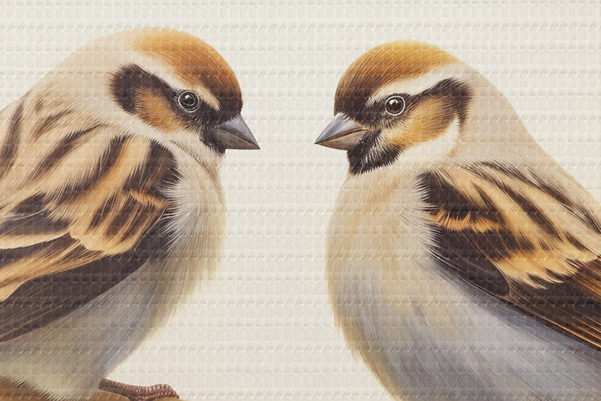 Selle lõuendi peenike niidipunus meenutab professionaalse kunstniku lõuendi pinda.
