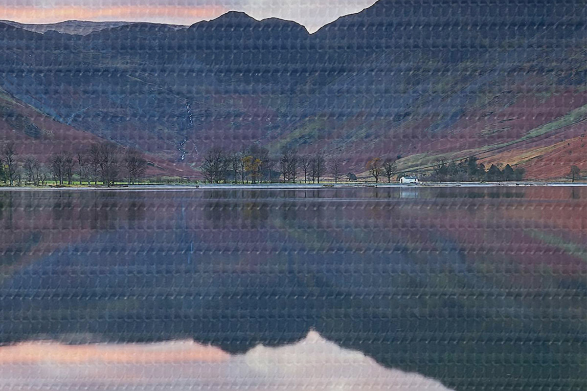 Selle lõuendi peenike niidipunus meenutab professionaalse kunstniku lõuendi pinda.